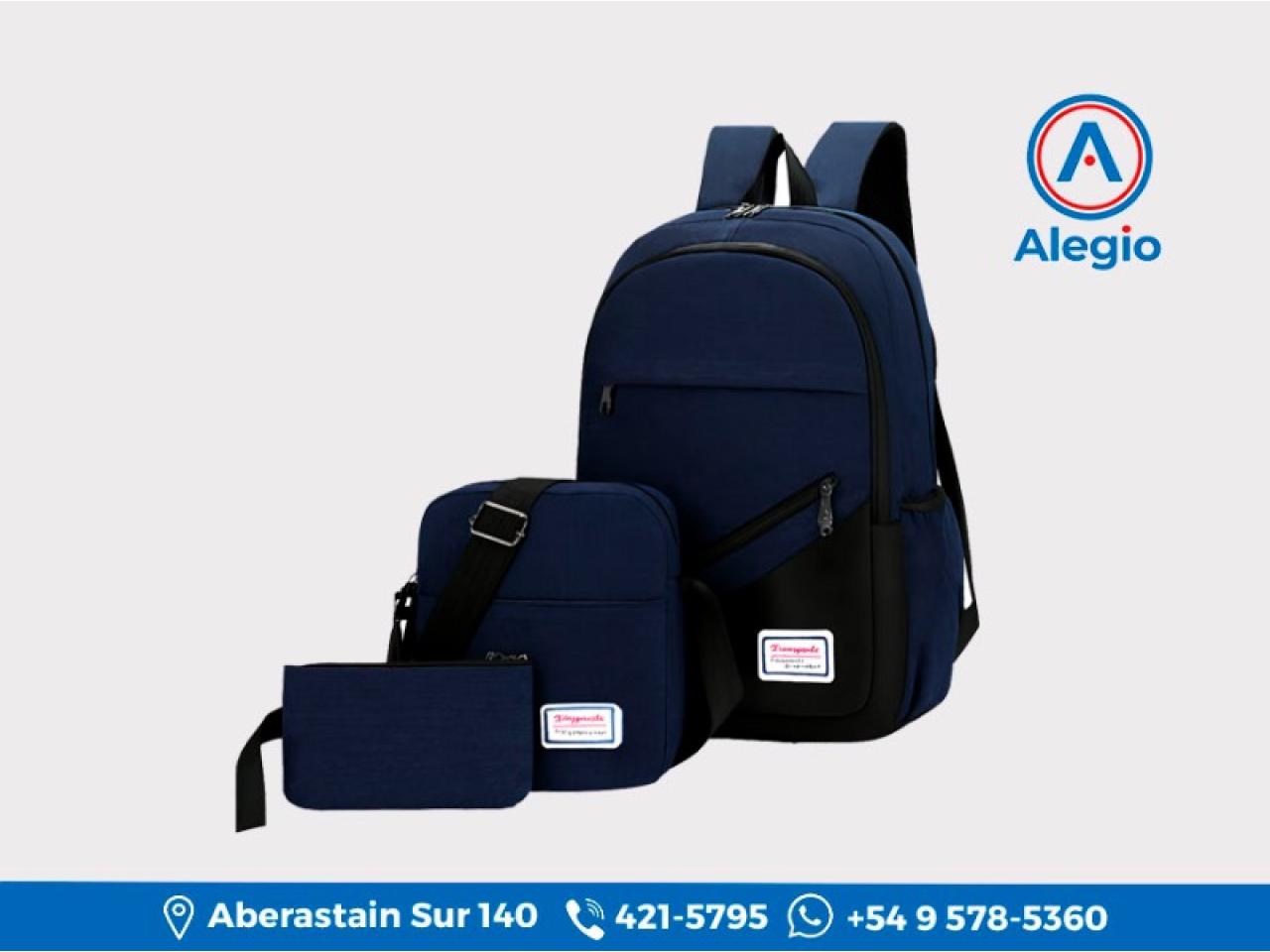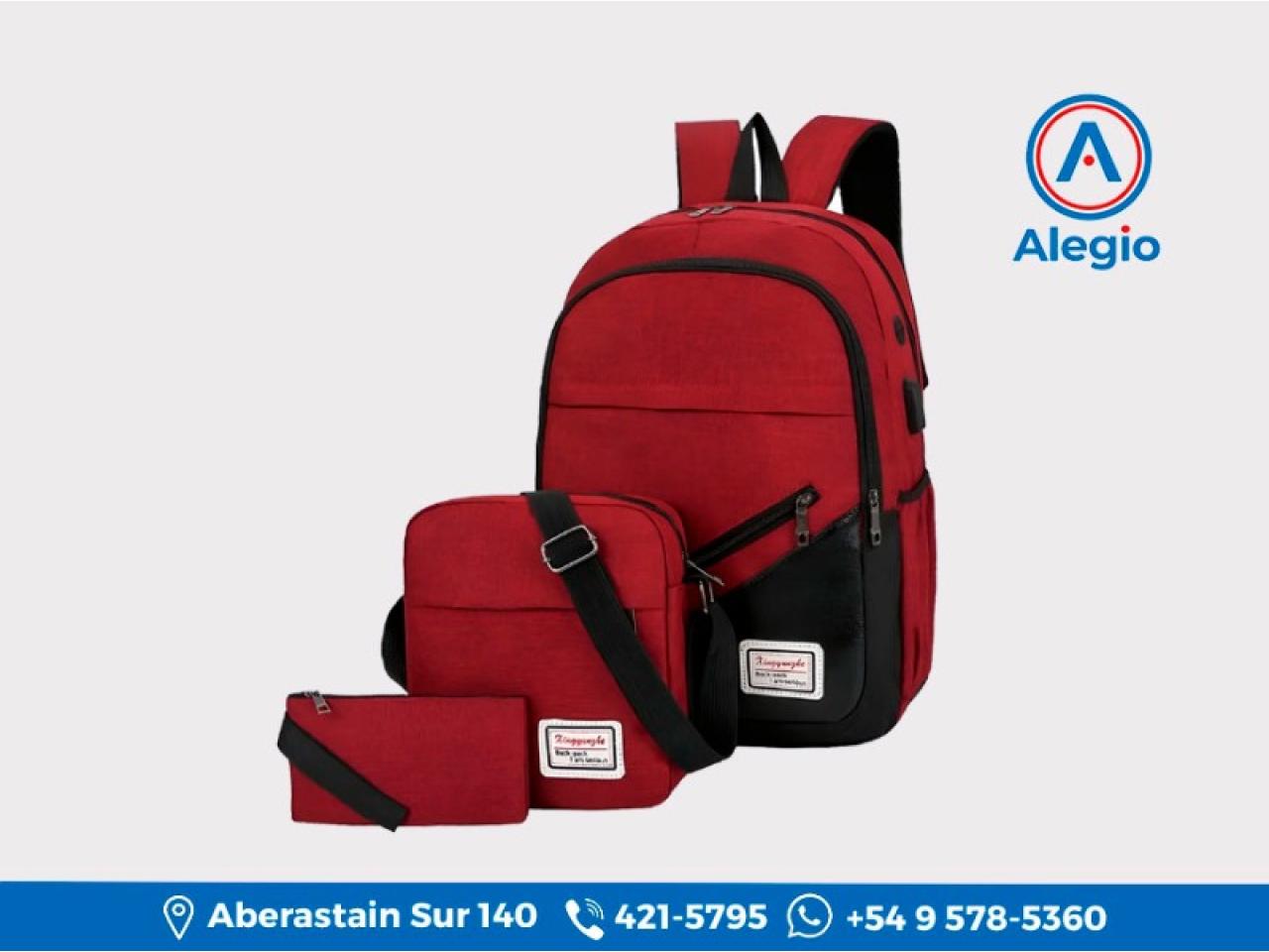 - Incluye: Mochila Antirrobo, Bandolera, Cartuchera
