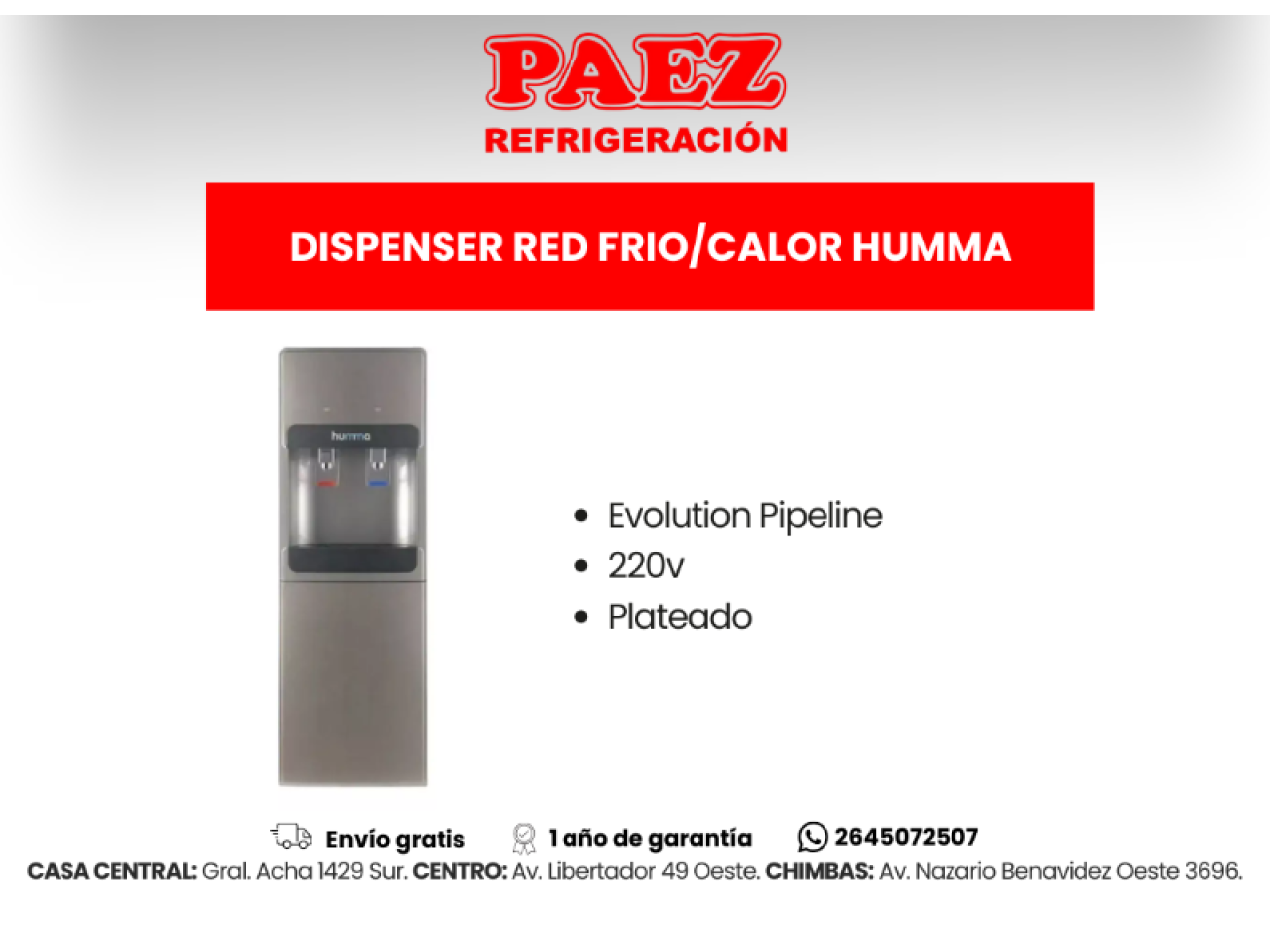 Dispenser Red Fc Humma- Envíos Sin Cargo- Un Año De Garantía-