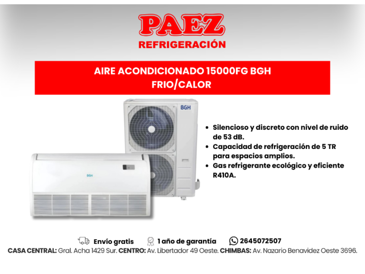 Capacidad de refrigeración de 5 TR para espacios amplios.