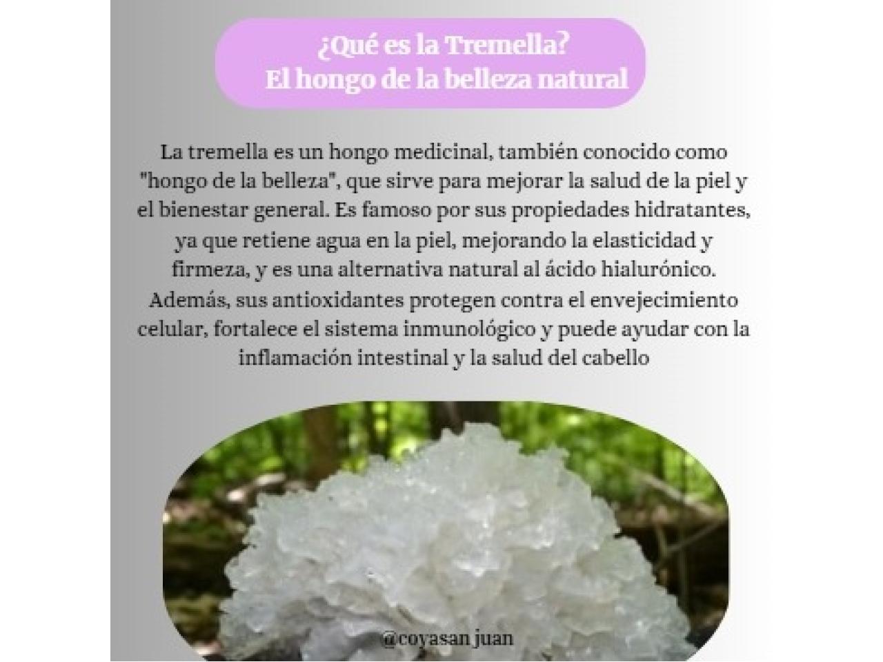 La Tremella es conocida como el “Hongo de la Belleza” por su capacidad de retener más agua que el ácido hialurónico.