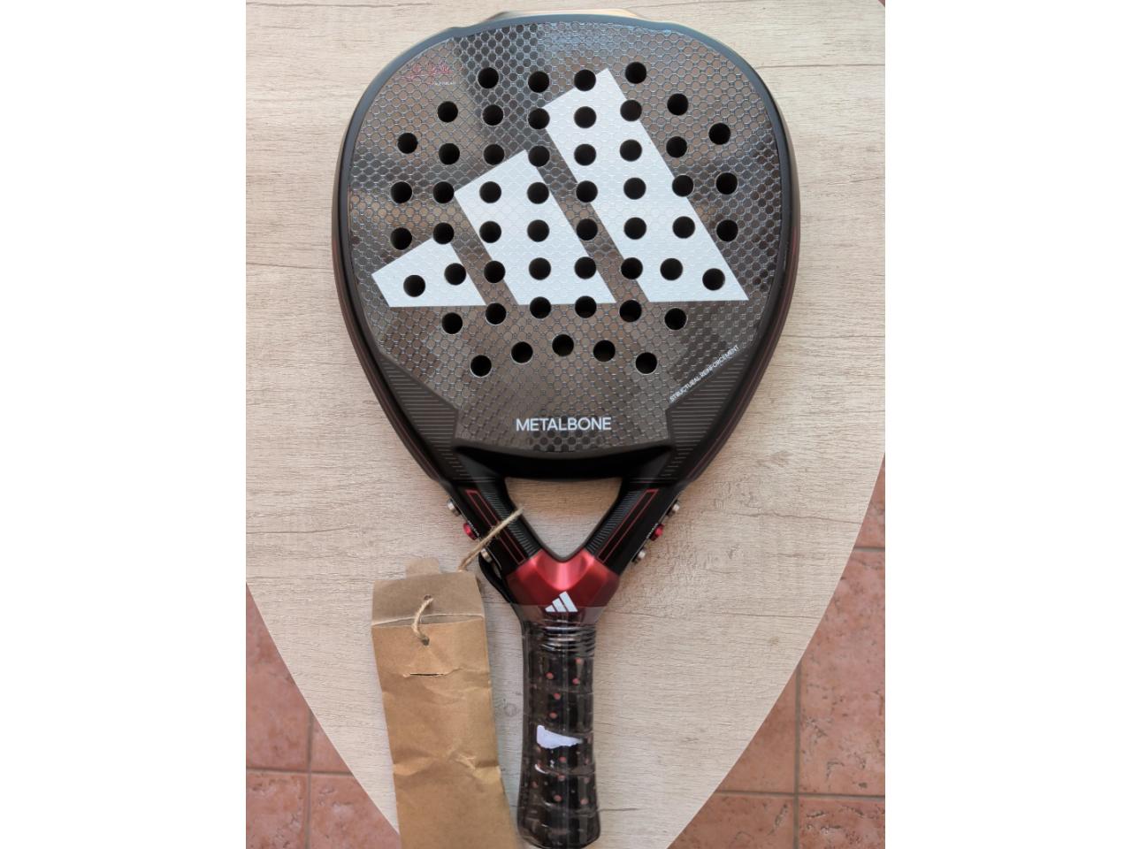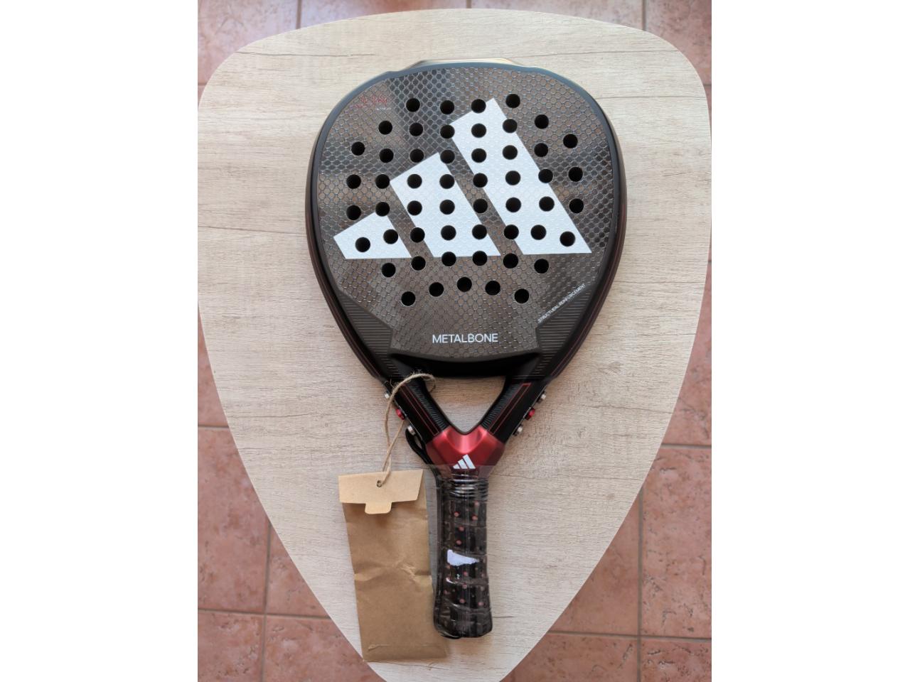 Adidas Metalbone 3.3, pala oficial del jugador profesional Ale Galán. Modelo de pala del año 2024. Pala diseñada para jugadores profesionales de alto rendimiento. Esta pala tiene un formato en Diamond Oversize. Una pala de potencia con una superficie de golpeo más amplia.