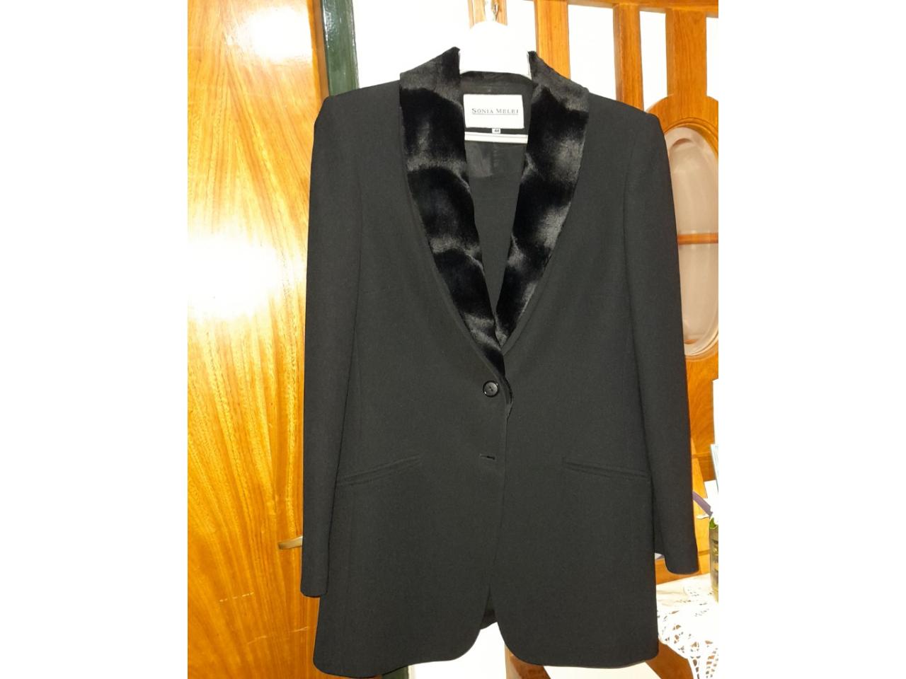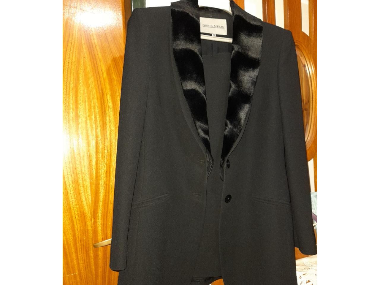 Traje de muy buena calidad color negro. Blazer cuello smoking y con aplique de piel . Talle 44. Muy buen estado. Un solo uso.