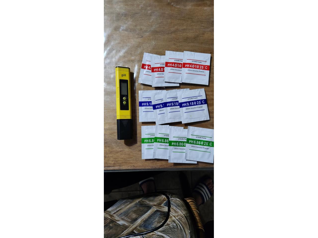 1 Medidor de Ph más 4 soluciones para calibrar (falta colocar pila)