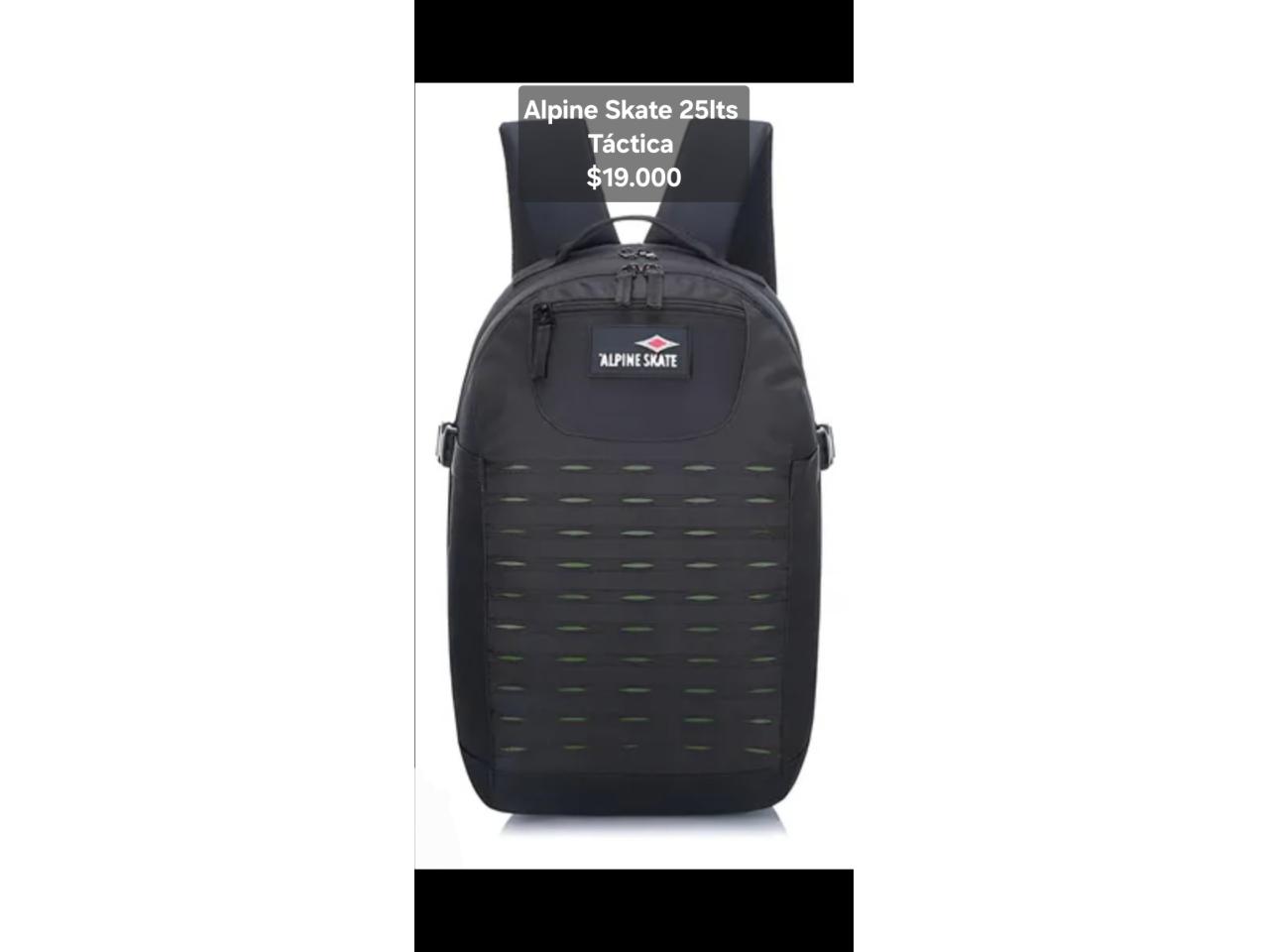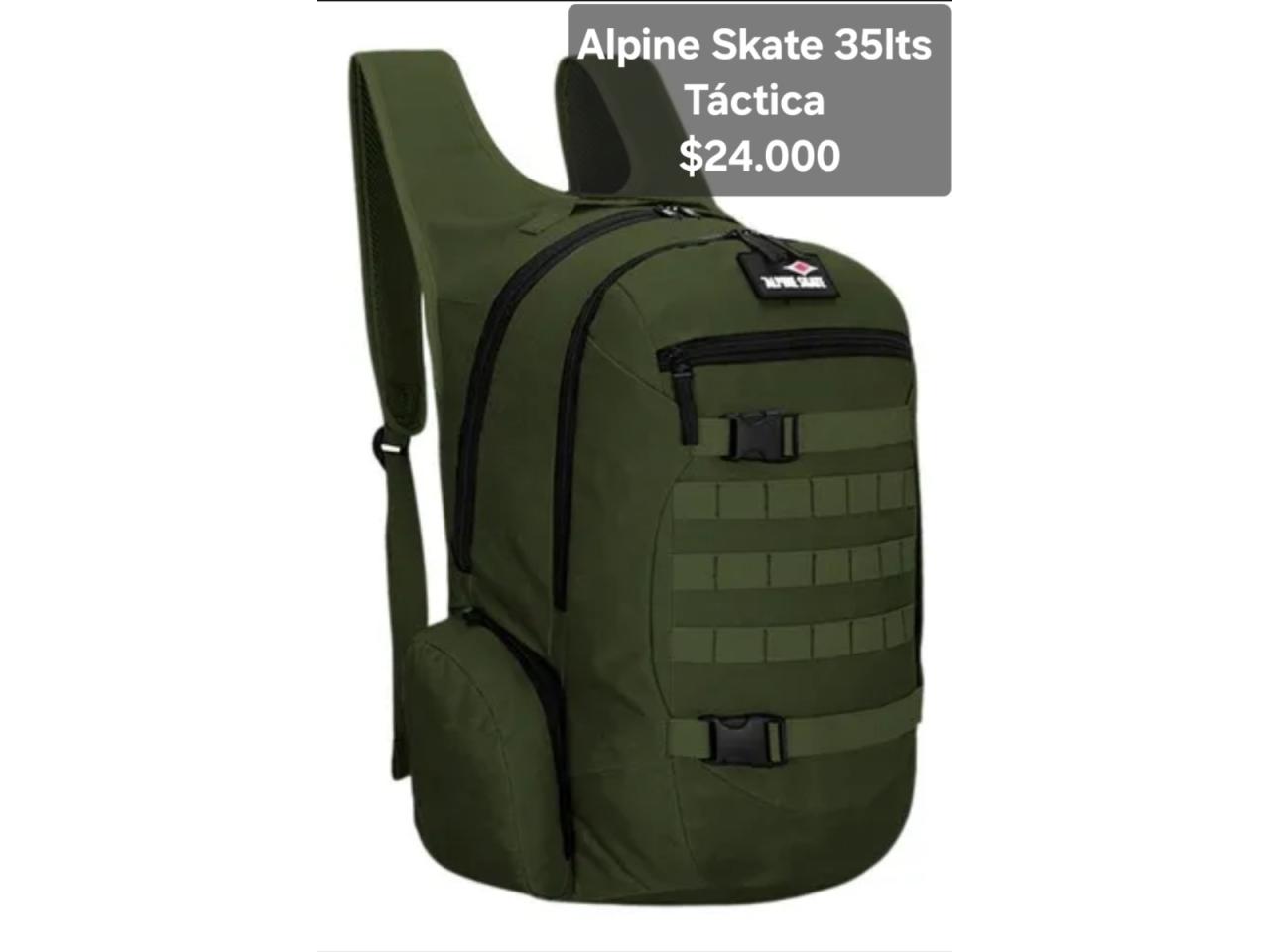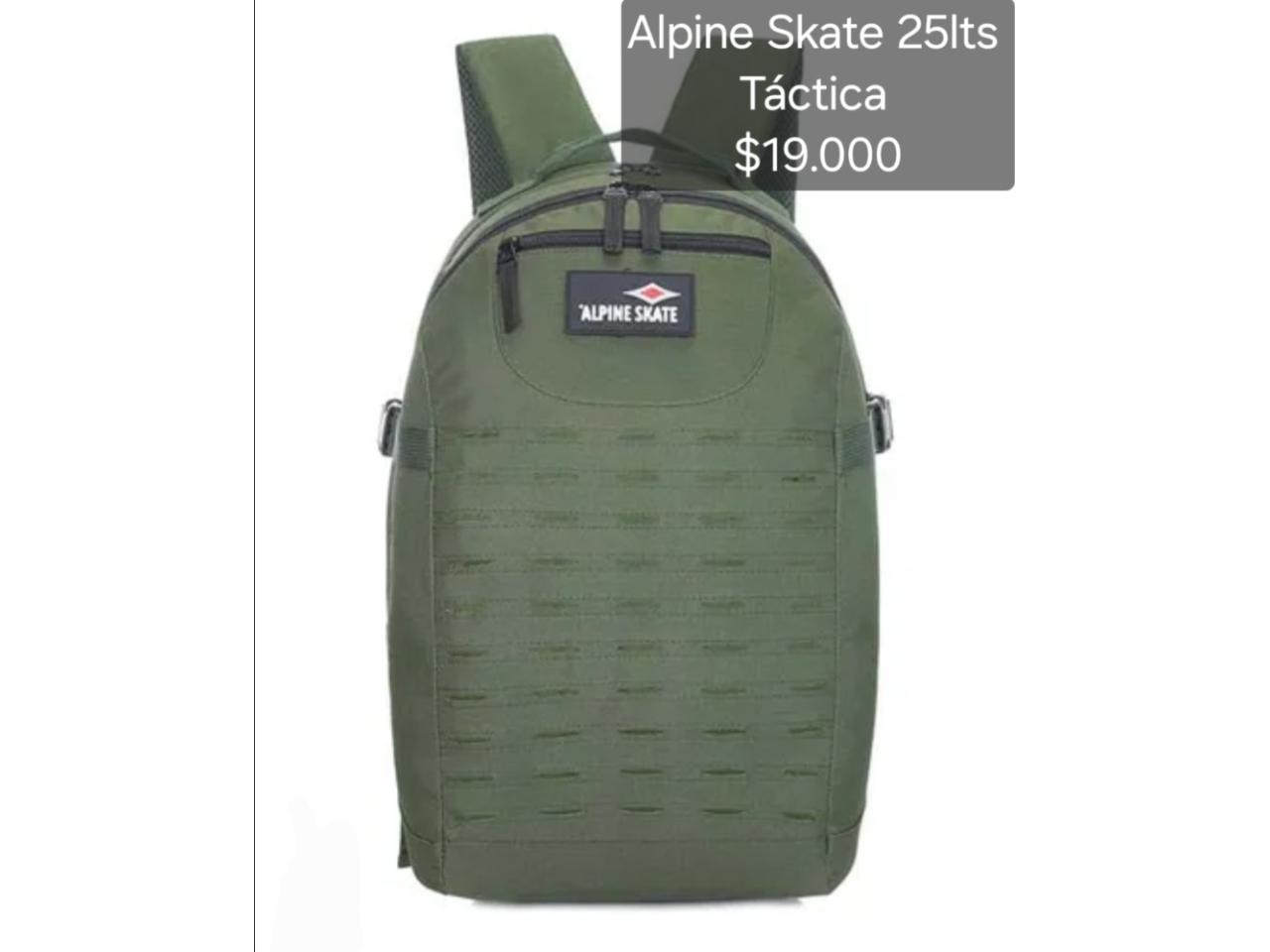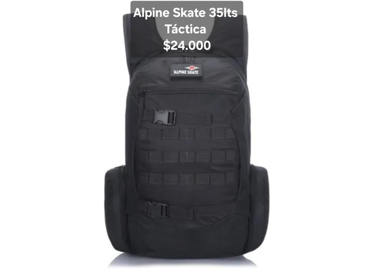 Mochilas tácticas Alpine Skate 25lts y 35lts y Discovery 40lts. Nuevas, originales, reforzadas, acolchadas, portanotebook, portabotellas, sistema molle, tela antidesgarro, precios publicados en cada imágen. Envios a domicilio en capital y alrededores con recargo.