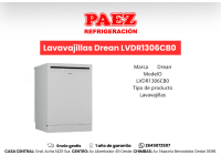 Lavavajillas Drean Lvdr1306ci0 13 Cubiertos Inox - Eficiencia A+- Pantalla Led Y Botones - Nuevo