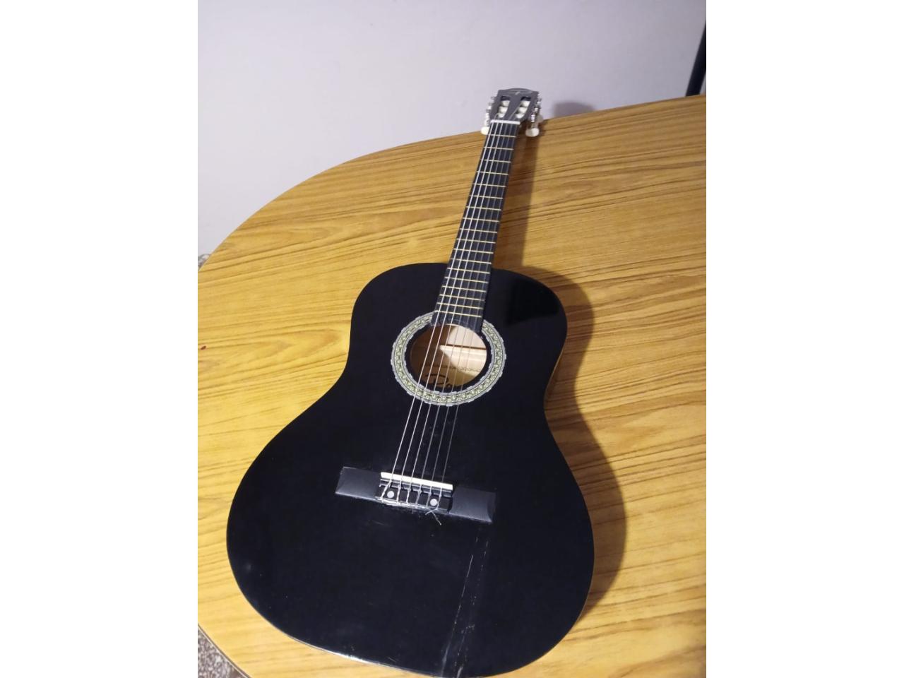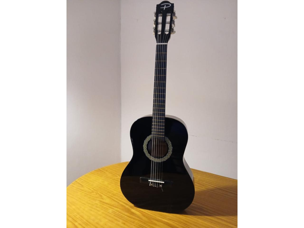 Guitarra Criolla clásica marca Parker. Cuerpo Laca . 6 cuerdas de nylon usada con un pequeño detalle en la laca. Con funda