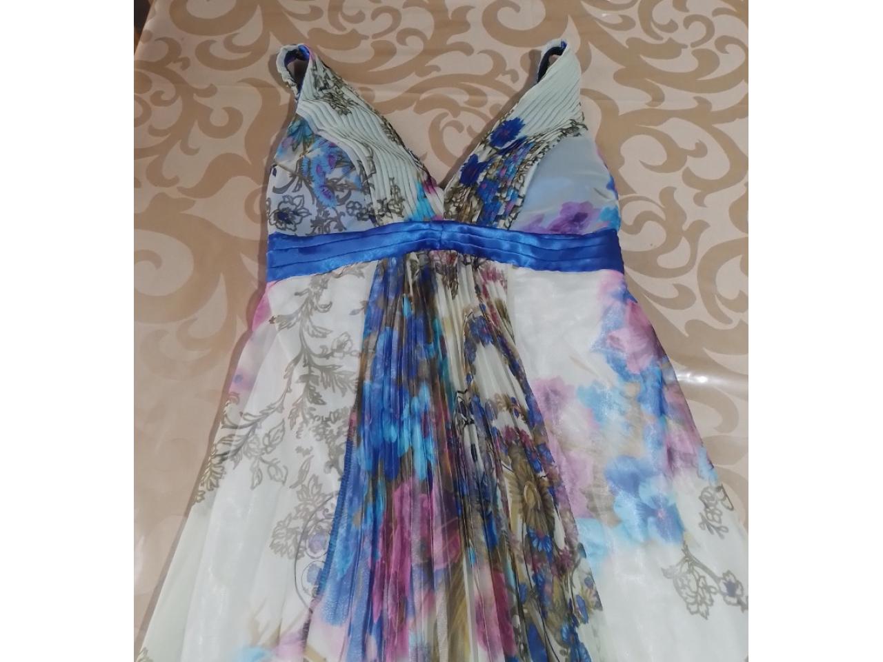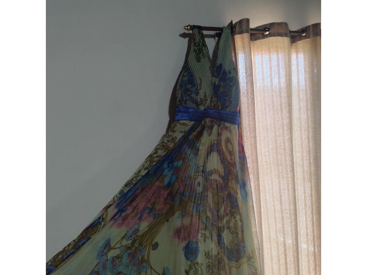Vendo vestido de Fiesta con detalles hermosos en el centro esta plizado, forrado completamente colores varios estampado espalda elastizada y ajustado a la cintura talle 3 o 4 .