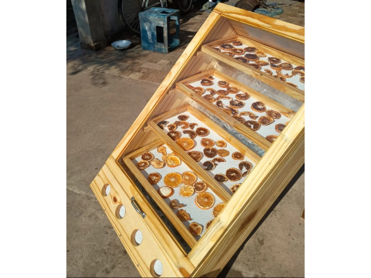 Deshidratador de 4 bandejas para deshidratar verduras frutas hongos etc Está fabricado en pino