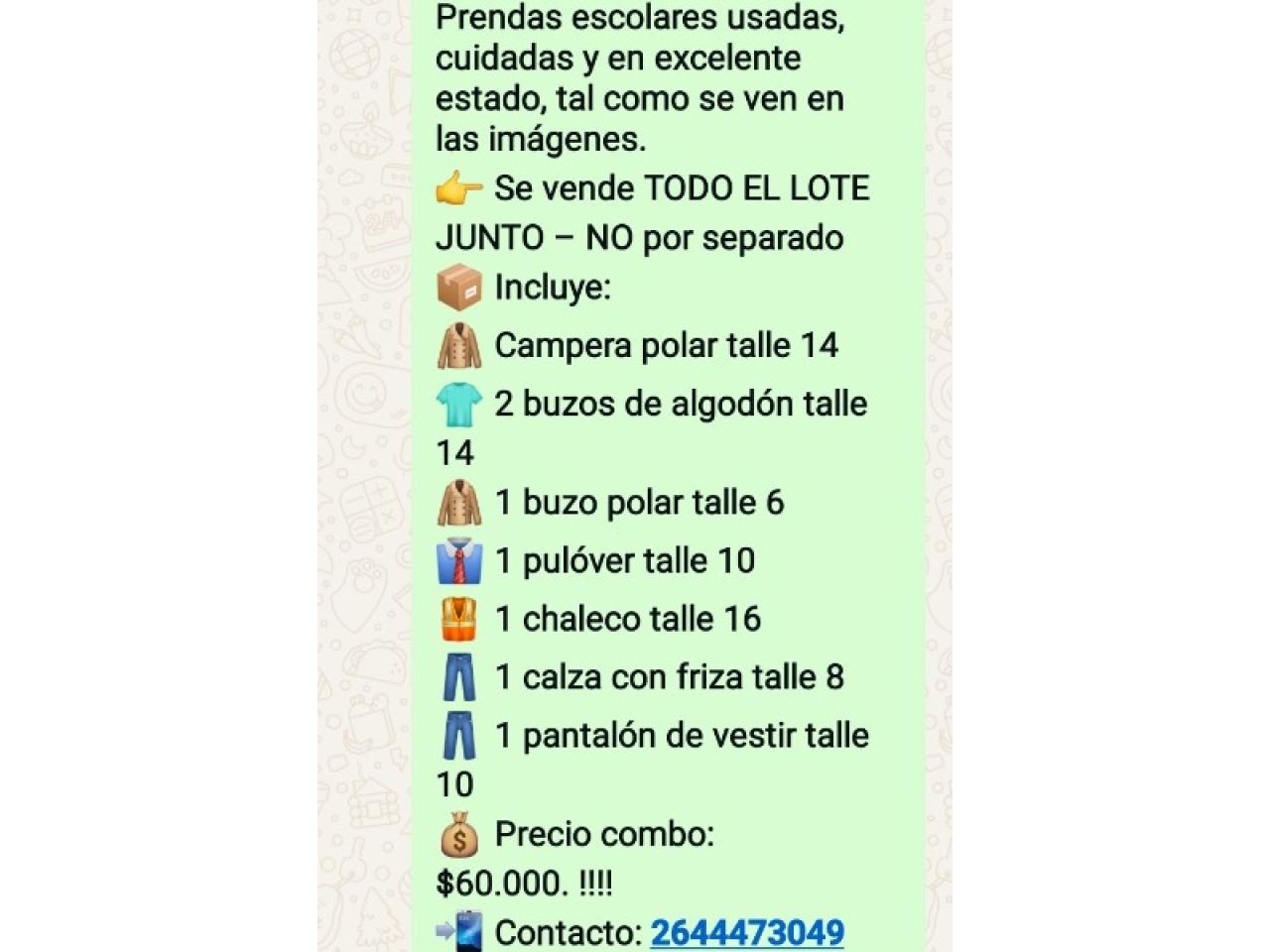 Prendas escolares usadas, cuidadas y en excelente estado, tal como se ven en las imágenes.