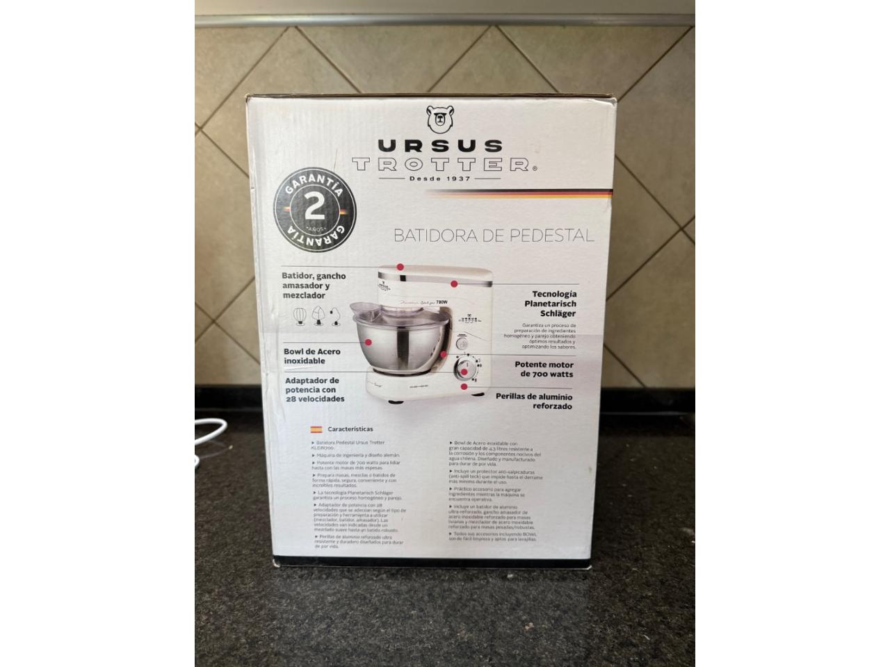 Incluye bowl de acero inoxidable, batidor, gancho, amasador y mezclador