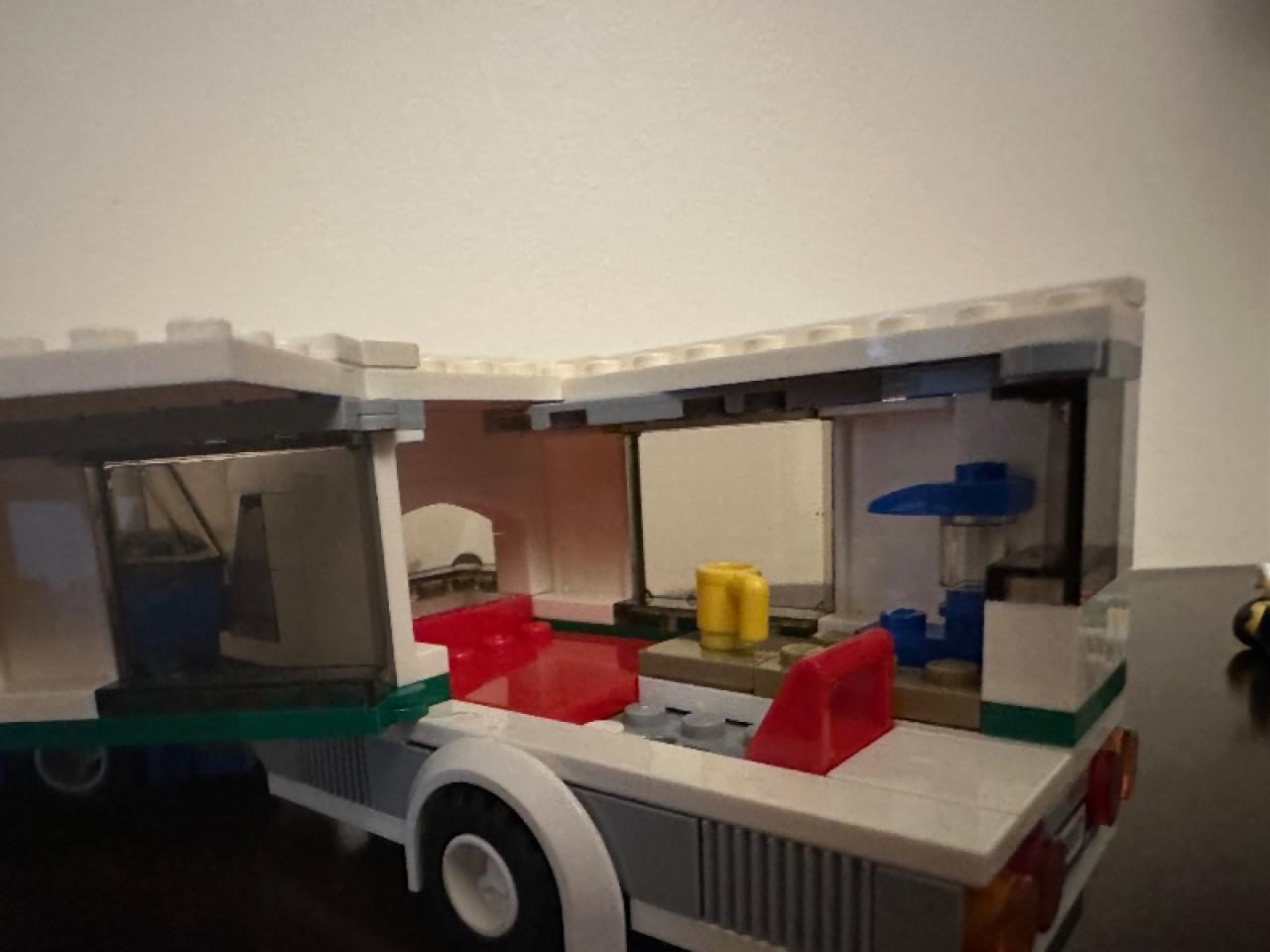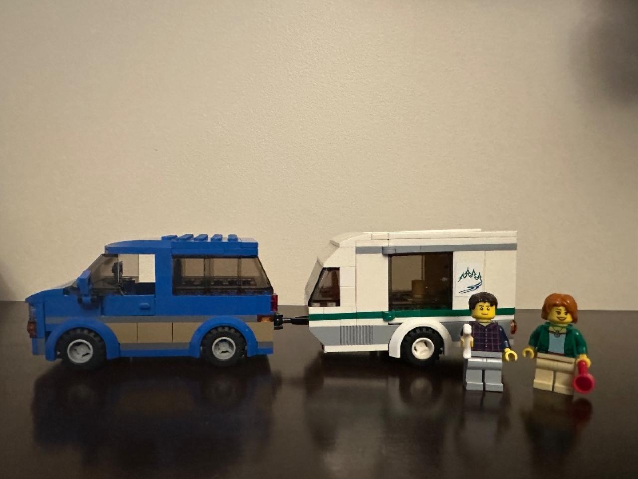 LEGO city, auto con casa rodante. Perfecto estado pero falta el perro y la parrilla.