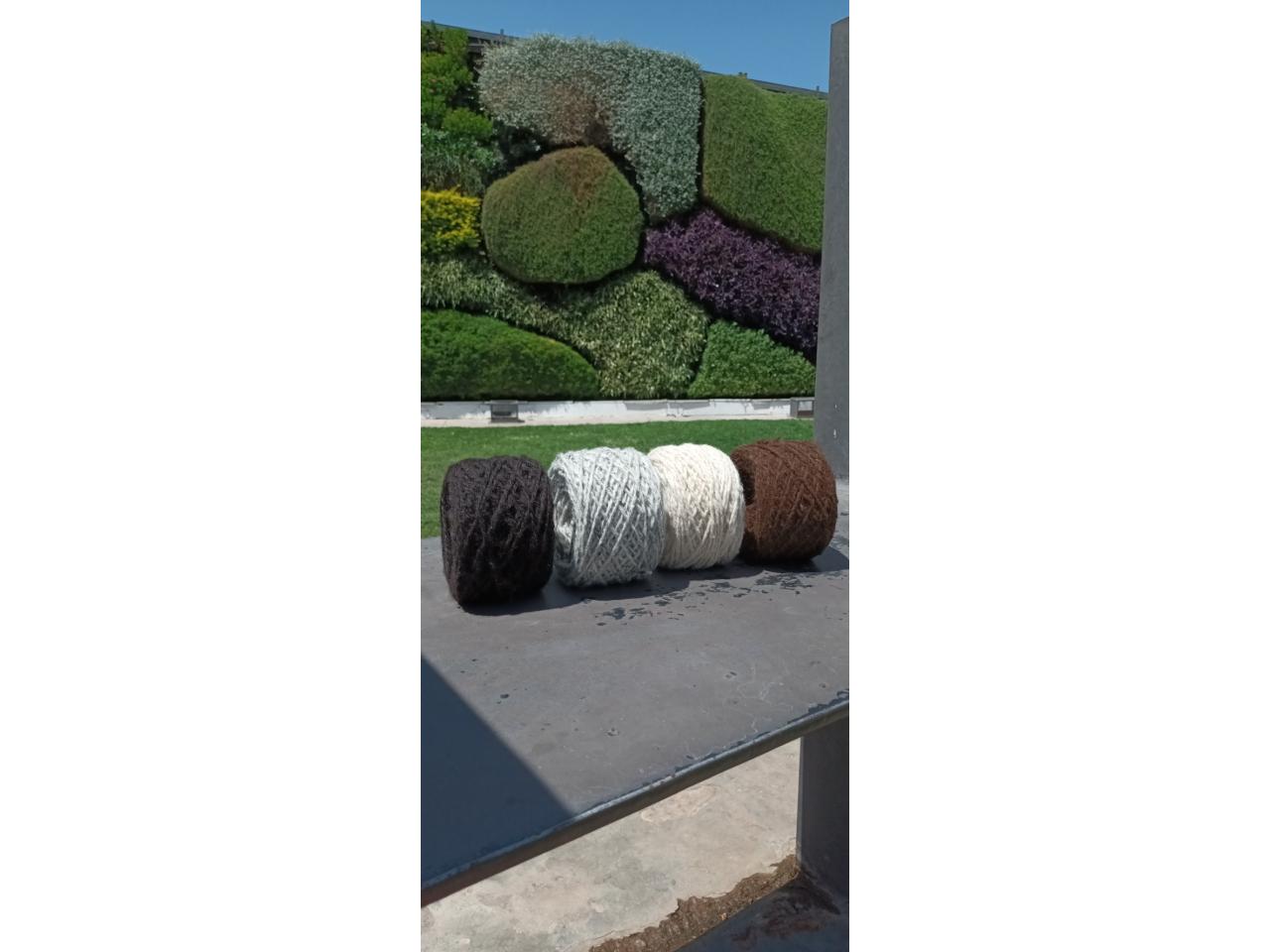 Hilado de llama, oveja natural y algodón premium.