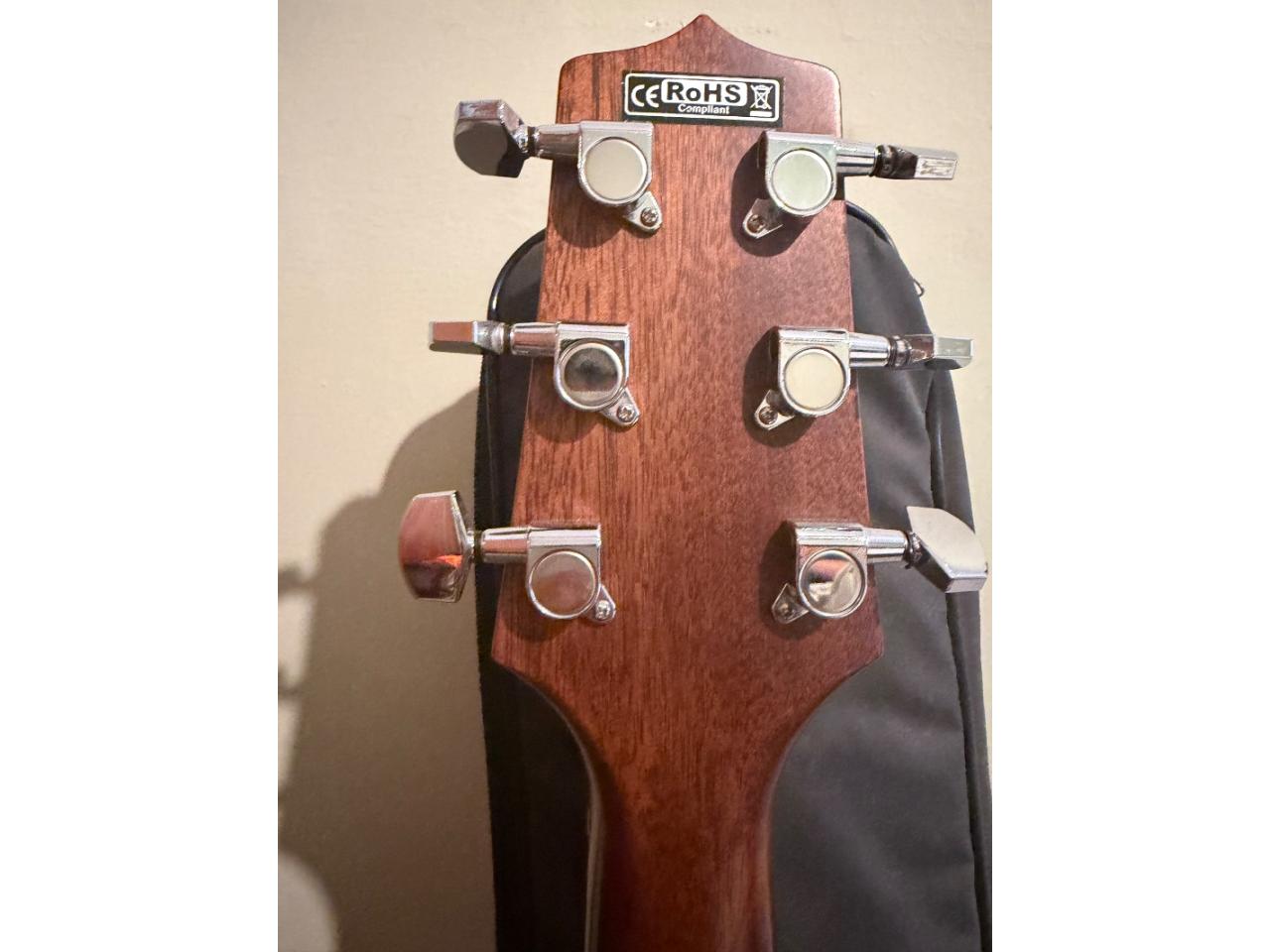 Está impecable igual a nueva está con funda . Tiene ecualizador de tres bandas , control de ganancia y afinador