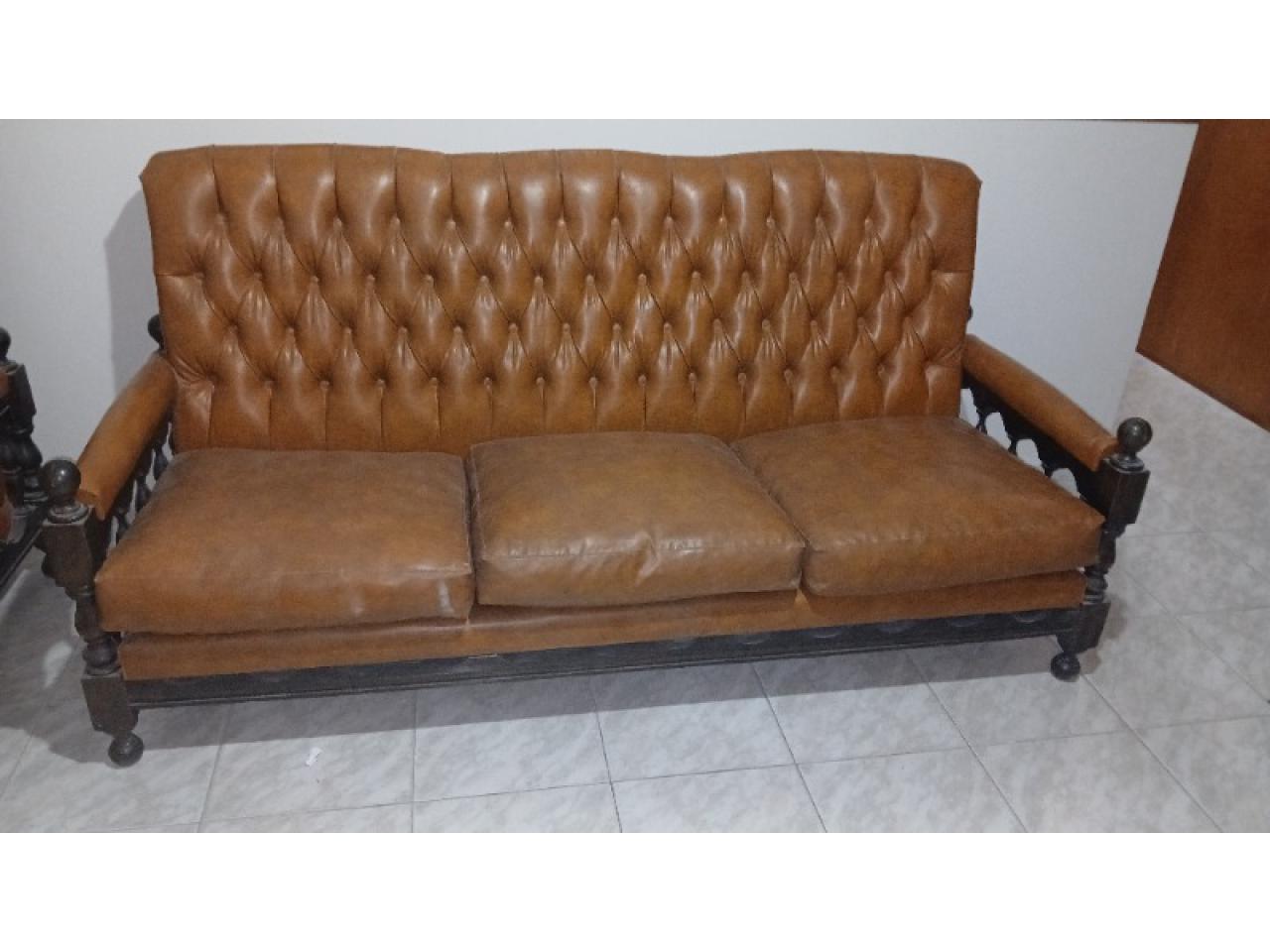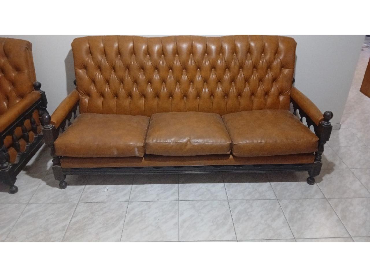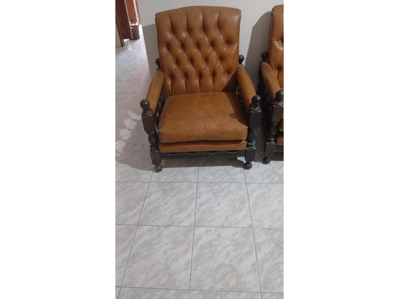 Juego living .. 2 sillones de 1 cuerpo y 1 sofá de tres cuerpos, de cuero excelente estado. Patas y brazos de maderas torneadas..buen estado