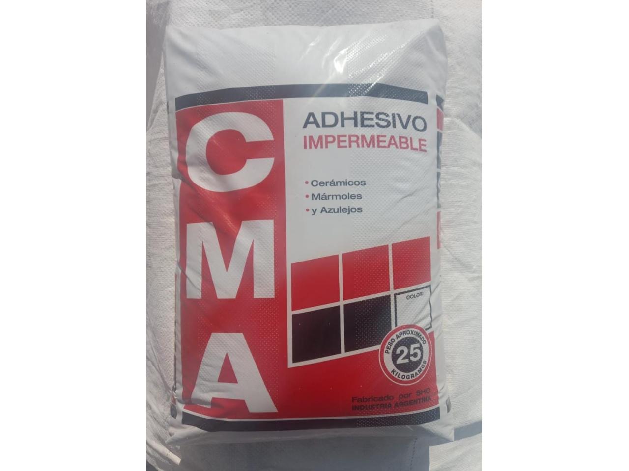 Excelente pegamento para cerámicos, mármoles y azulejos. Peso aproximado 25kg. Llevo a domicilio mínimo 10 unidades.