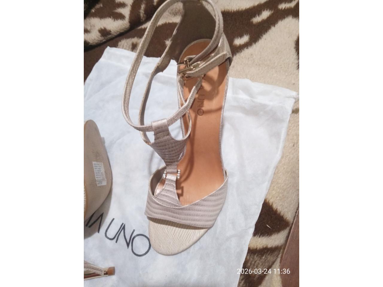SANDALIAS MARCA VIA UNO, COLOR ALMENDRA CON TACO AGUJA COLOR DORADO NUMERO 38, POR WHATSAP MUESTRO LAS FOTOS