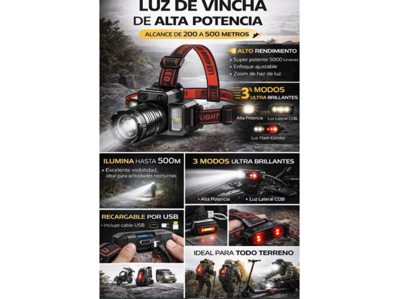 Linterna Frontal Led Vincha Recargable Alta Potencia F-t51