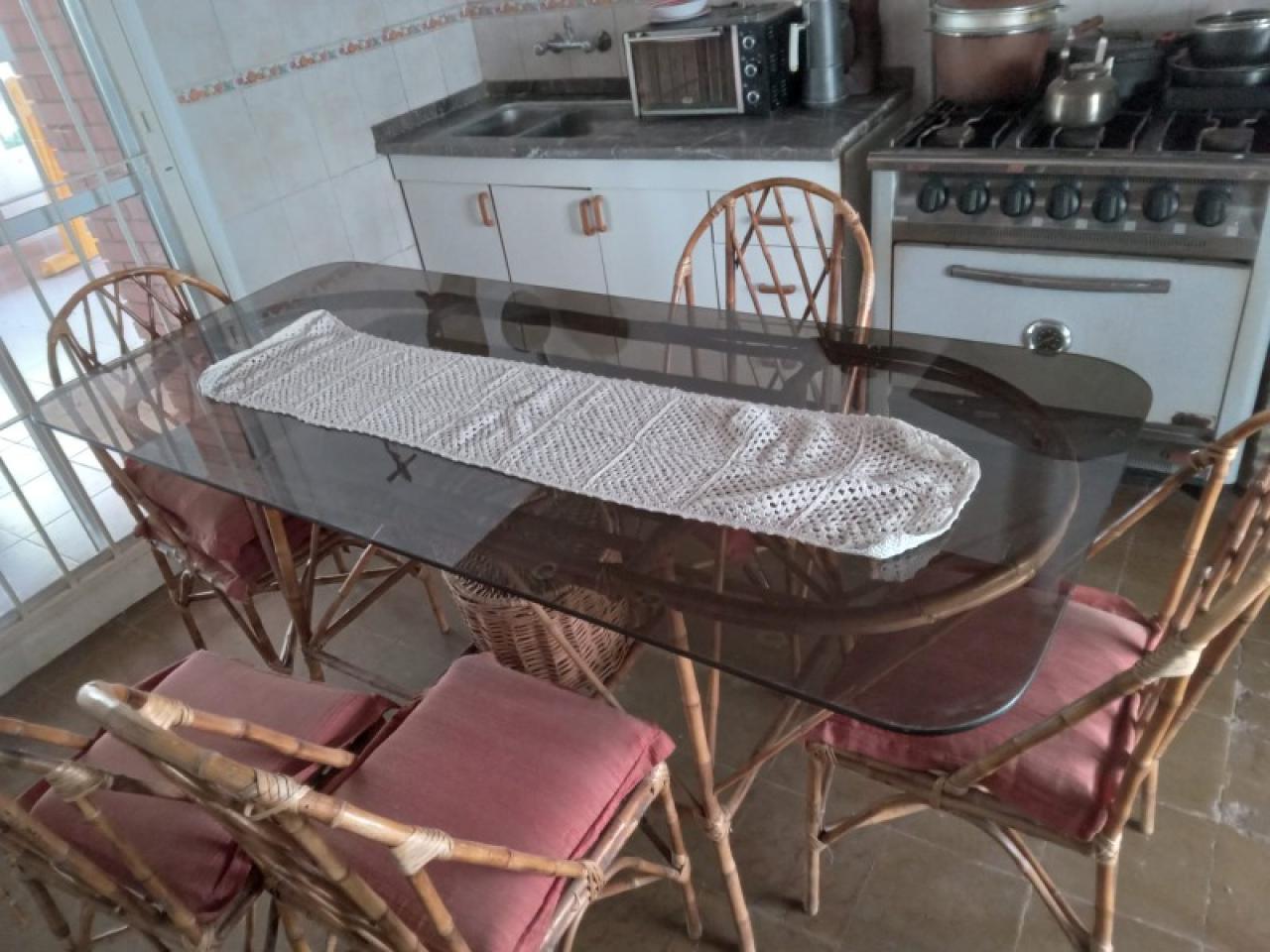 Mesa de caña. Con grueso vidrio de 1,80 x 0,78. El vidrio es de gran valor. GRATIS: 6 sillas de caña. Escucho ofertas.
