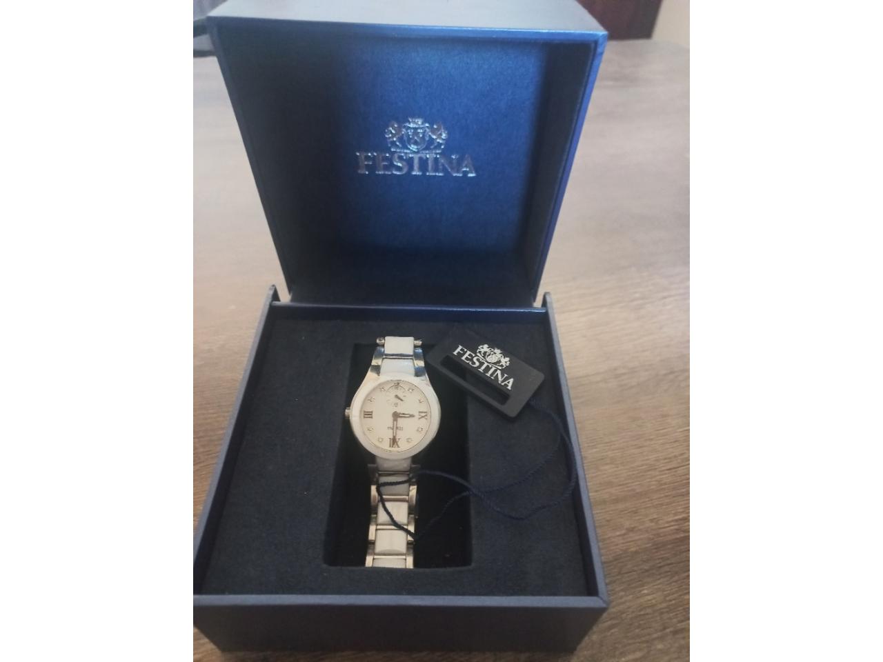 El reloj Festina Ceramic F16588/2 para mujer es un accesorio caracterizado por su construcción en cerámica blanca de alta tecnología y acero inoxidable. Incluye movimiento de cuarzo, cristal mineral resistente y resistencia al agua de 5 ATM.