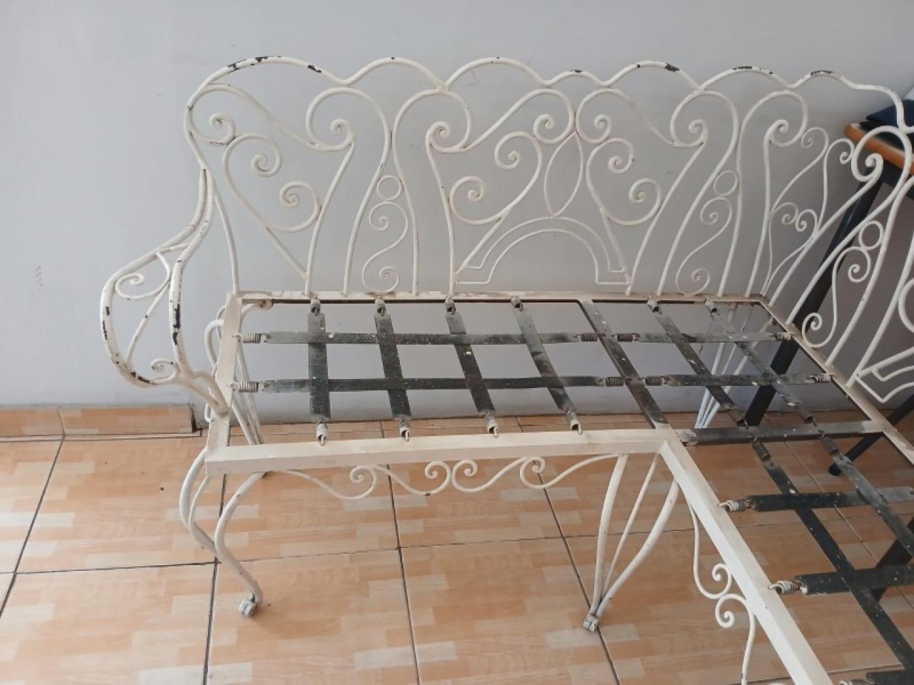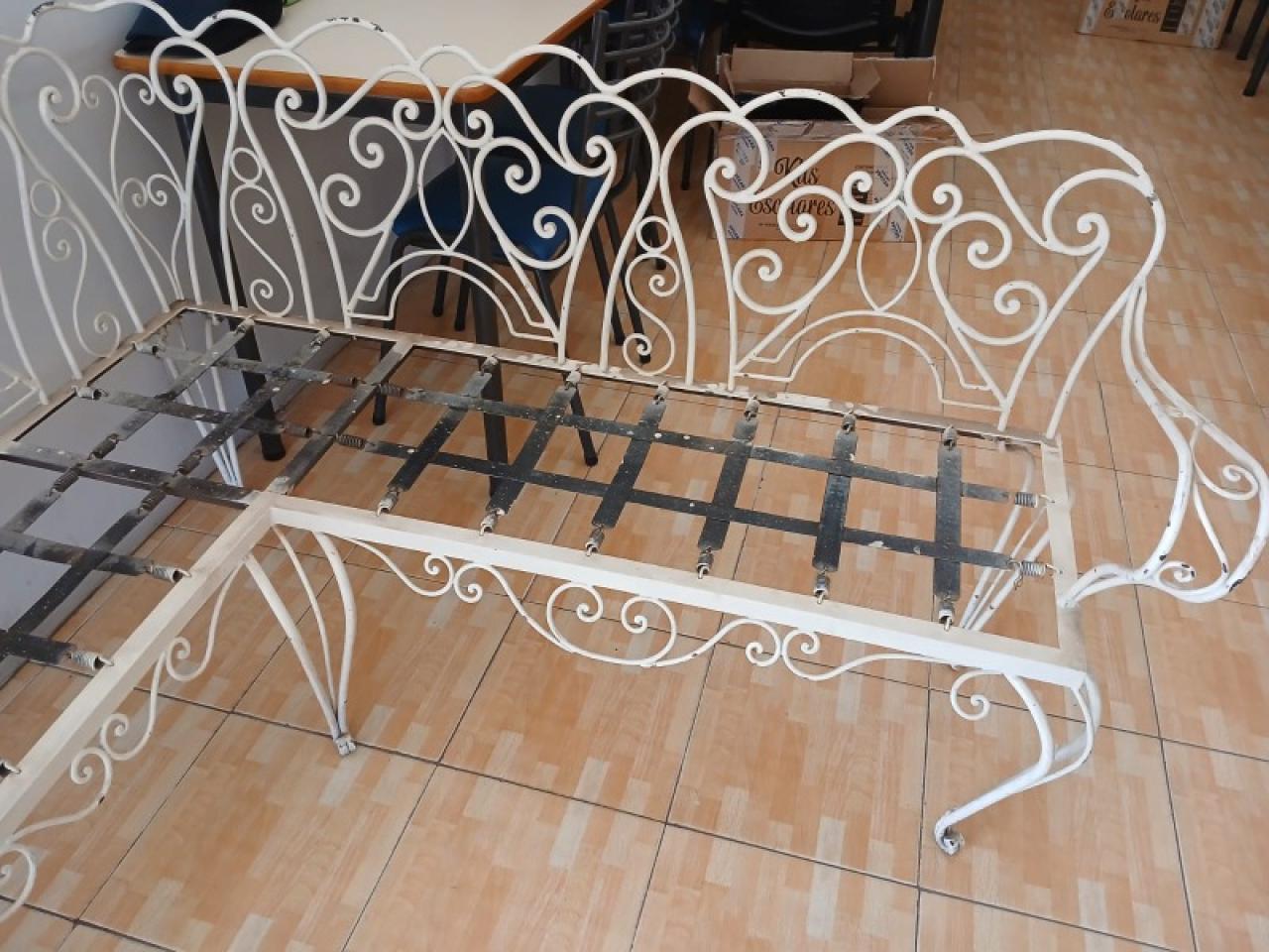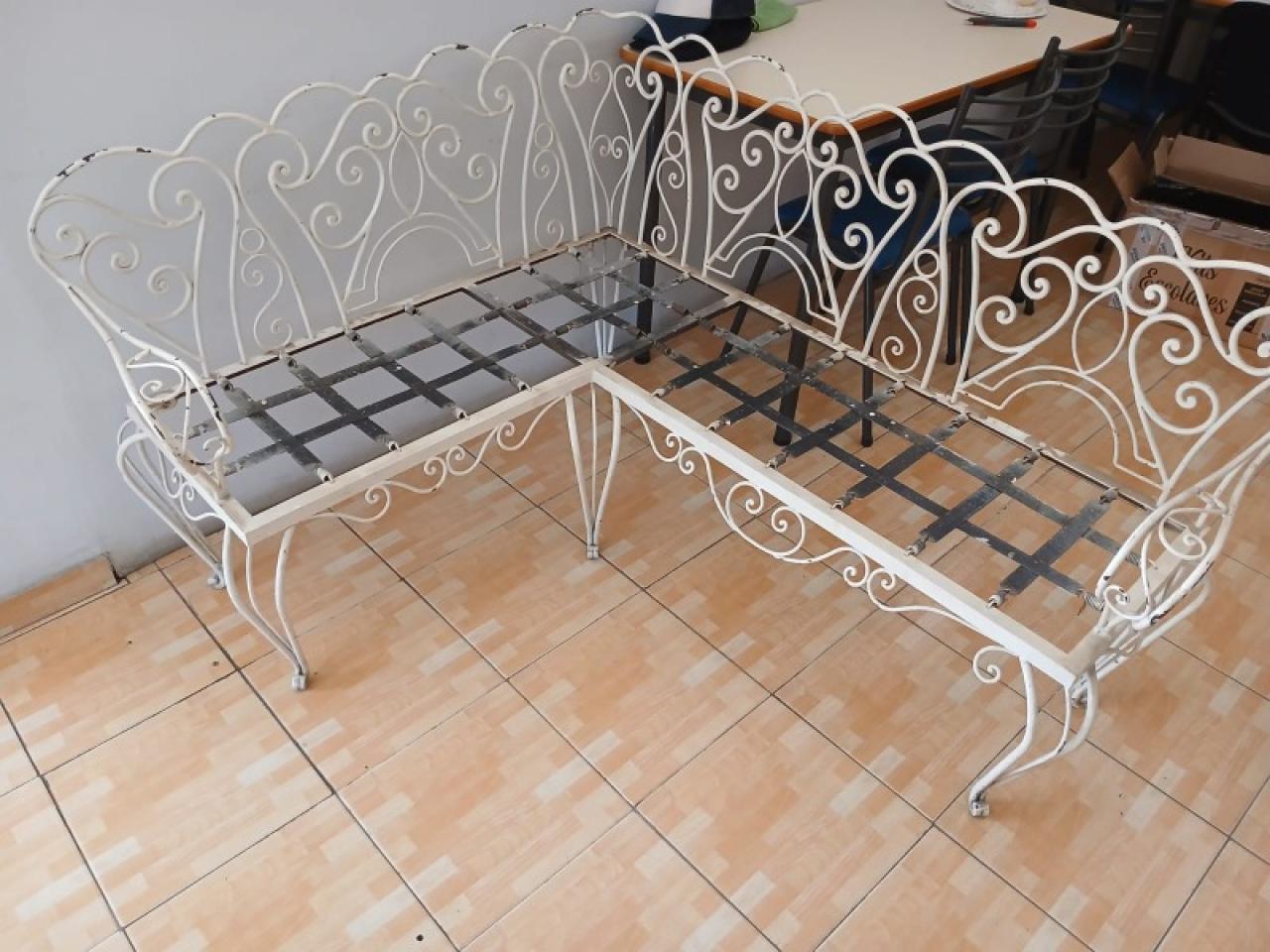 Juego de jardín y/o interior: contiene sillón en L, mesa y lámpara de pie. Todo en hierro, muy resistente.