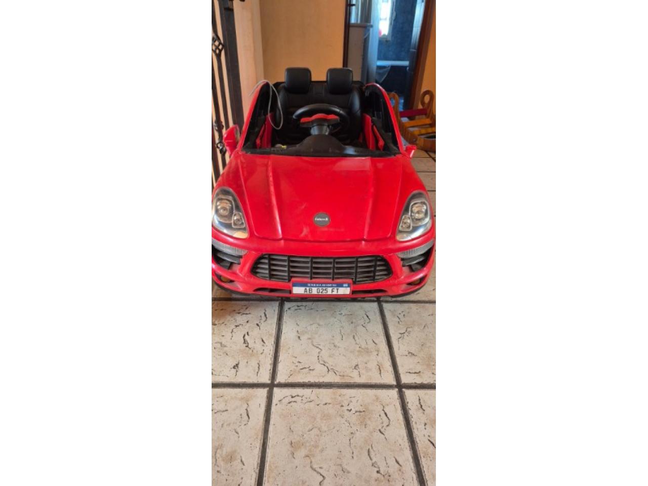 Auto a Bateria Rojo Felcraft Porsche Style - para 2 niños - Autonomía para manejar solos o control remoto para manejarlo adultos - Luces - Bocina - Radio - USB - Bluetooh - Bateria 12V agotada (cargar o reemplazar)