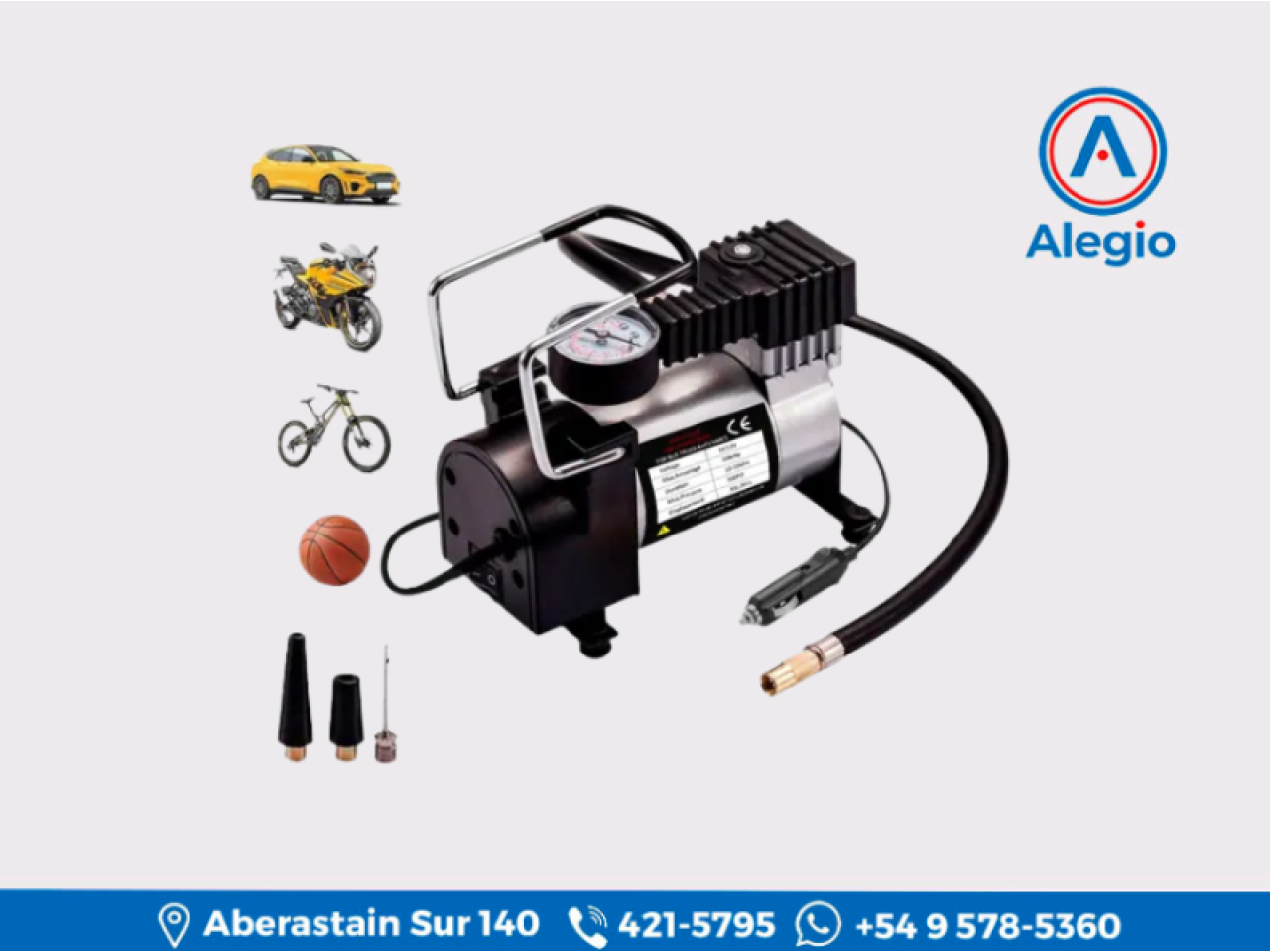Apto para neumáticos de auto, bicicleta, motos e inflables compatibles con los picos incluidos. Una herramienta versátil tanto para uso vehicular como recreativo.