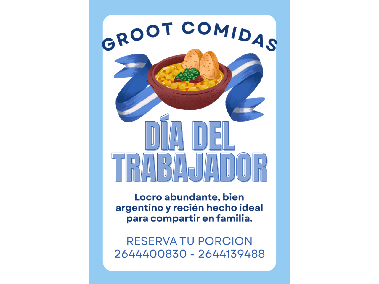Este primero de mayo disfruta tu día con el locro. Abundante y bien argentino. Reservas al 2644400830 - 2644139488