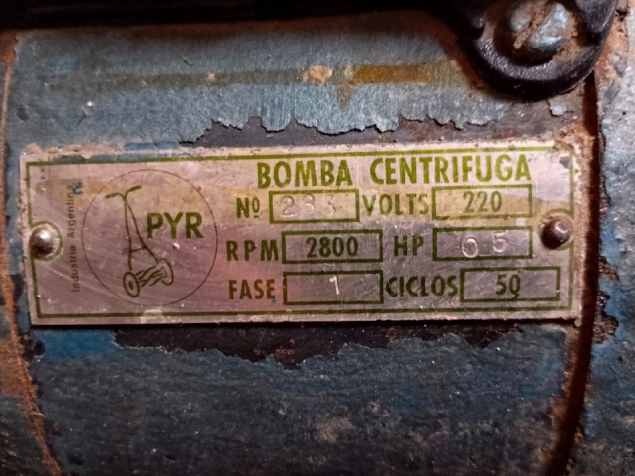 Bomba Centrifuga antigua de 0,5 hp funcionando, excelente estado. Se vende por no usarse.