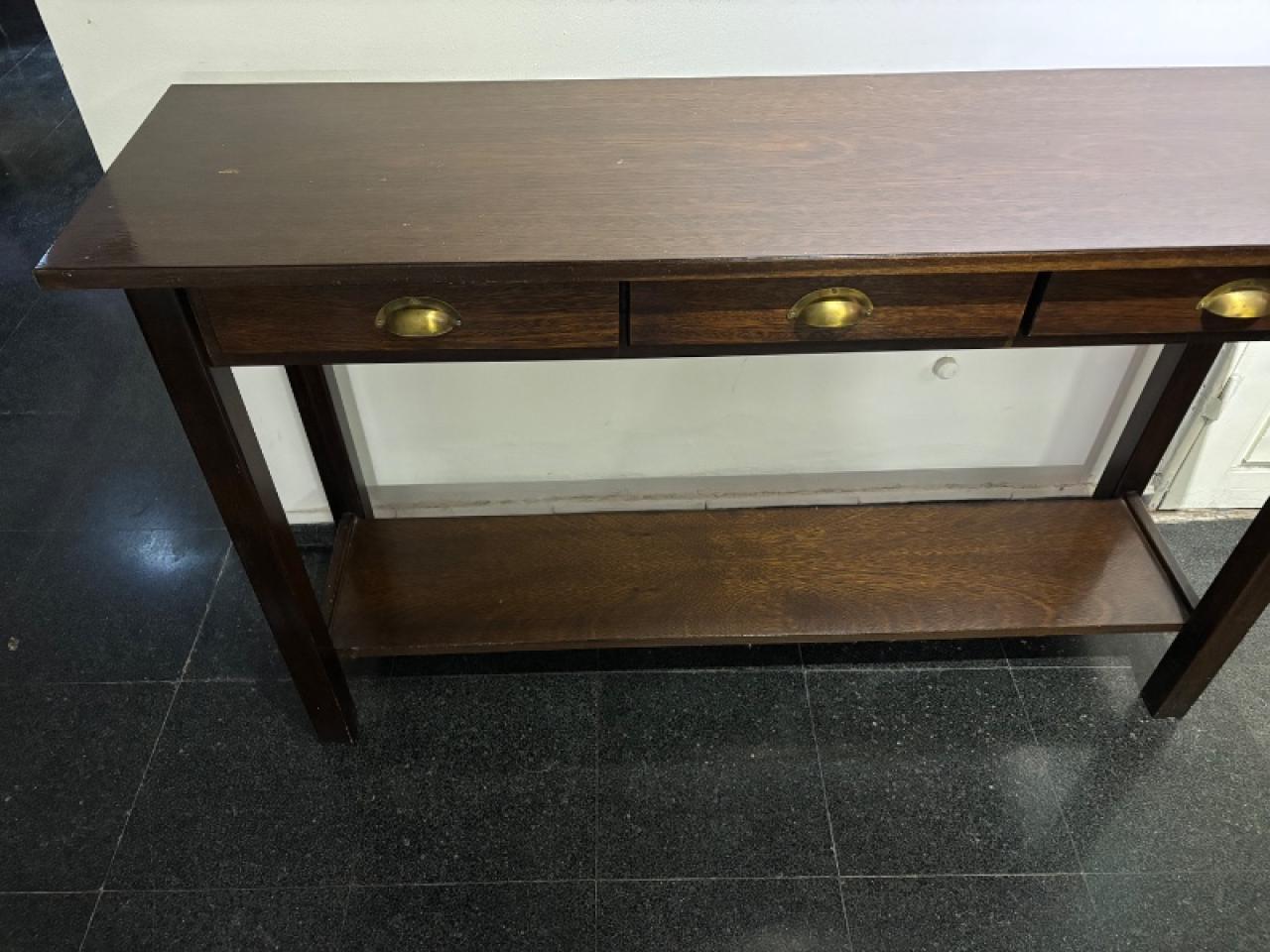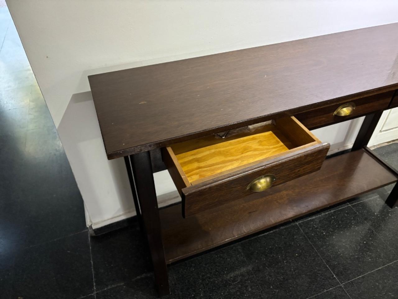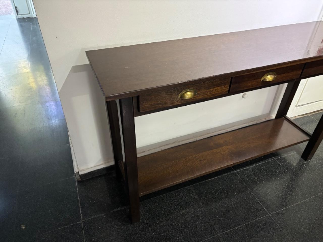 Mesa de arrime de roble macizo lustrado con 3 cajones