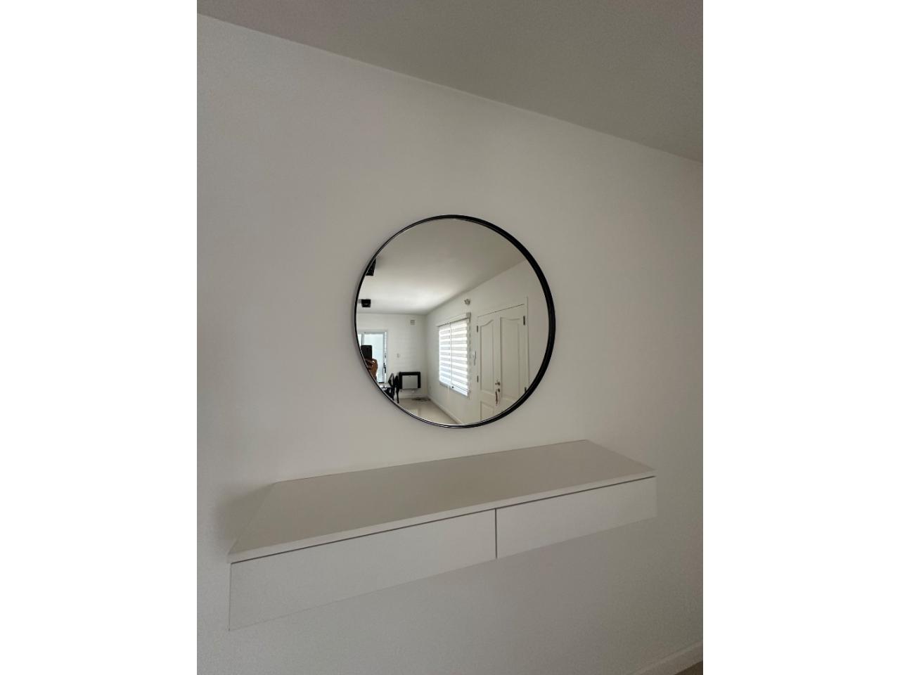 Espejo redondo 80 cm de diámetro, marco de hierro y pintura al horno.
