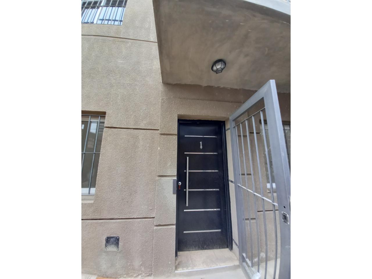 Amplio y luminoso mono ambiente en planta baja equipado con mueble bajo mesada en cocina , termotanque eléctrico de 65 litros, puerta reja, rejas en ventanas, cerramientos de aluminio, patio de luz con ventanales a cocina y ambiente general, instalación para lavarropas. Baño completo. No paga expensas (por el momento) solo energía de espacios comunes. Paga energia, agua y municipalidad. No paga mes de depósito. Con cochera descubierta.