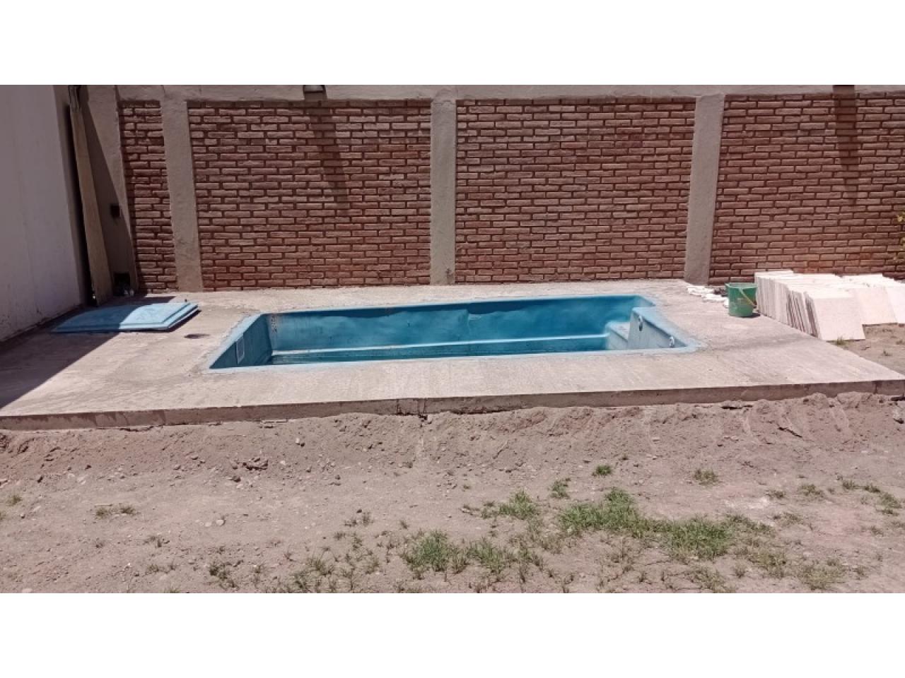 Casa de 3 dorm, cocina, living, comedor, patio, pileta, cochera para 2 autos.