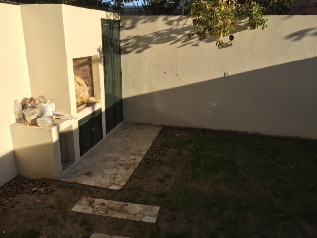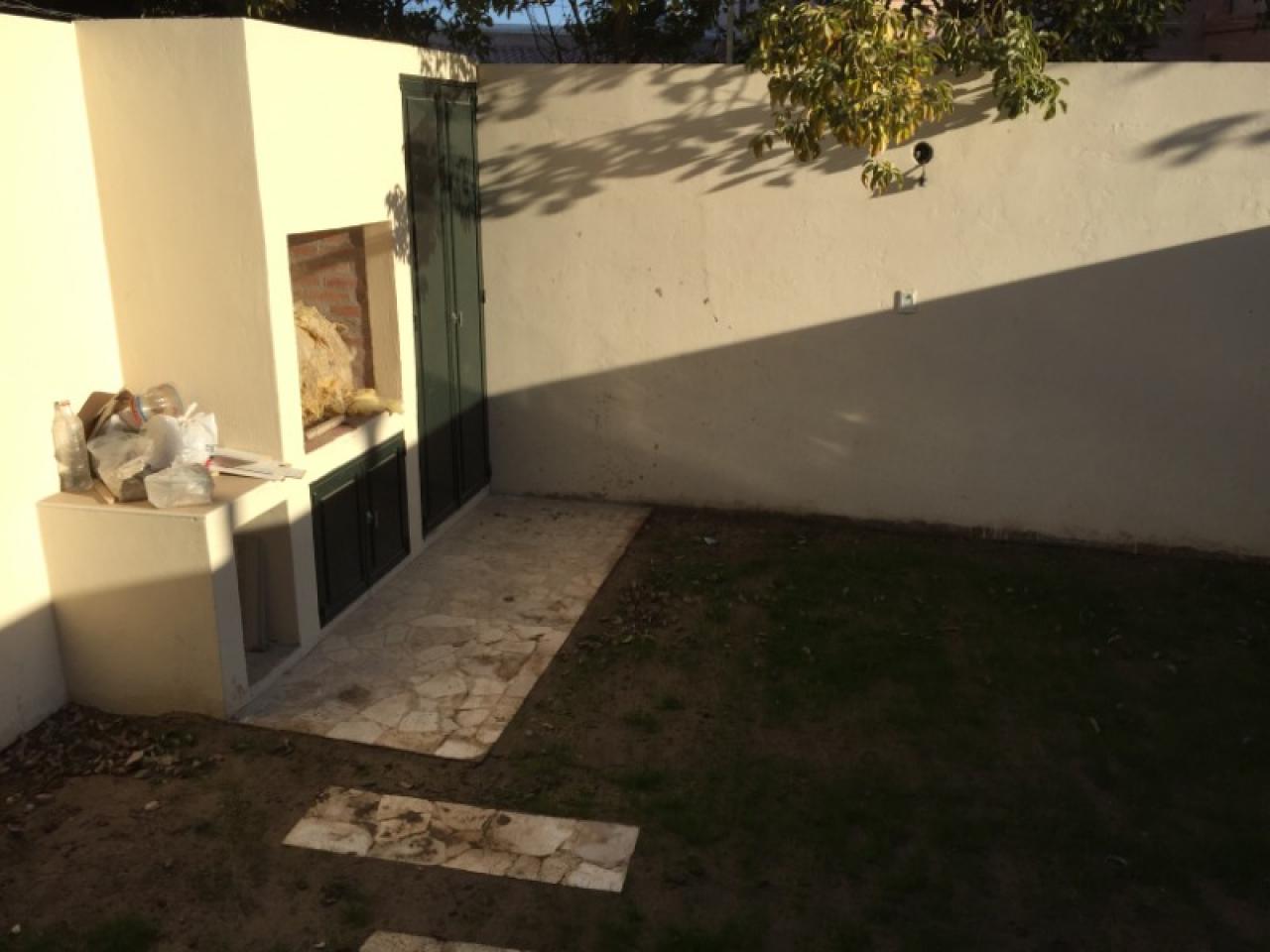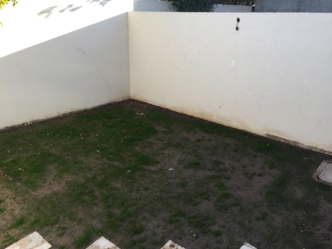 Departamento tipo casa, en planta baja, con cochera al frente y patio trasero con parrillero, verde con riego automático, excelentes muebles en cocina y artefactos en baño con antebaño, dormitorios con placares completos