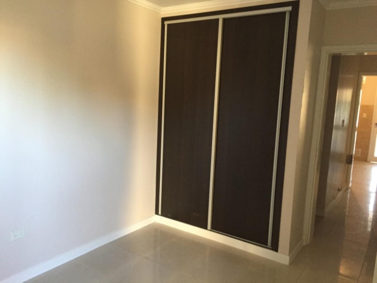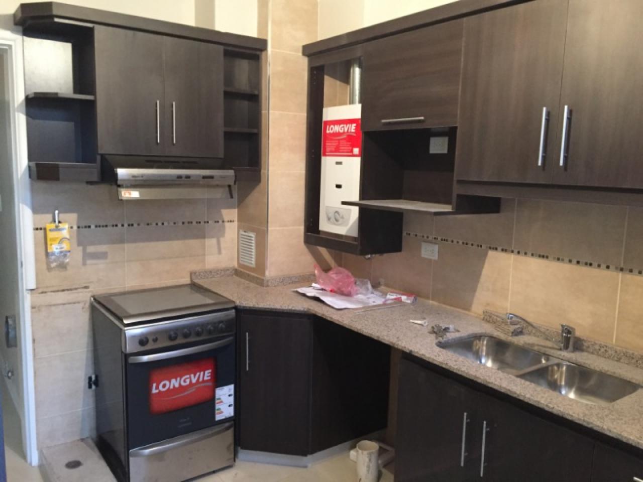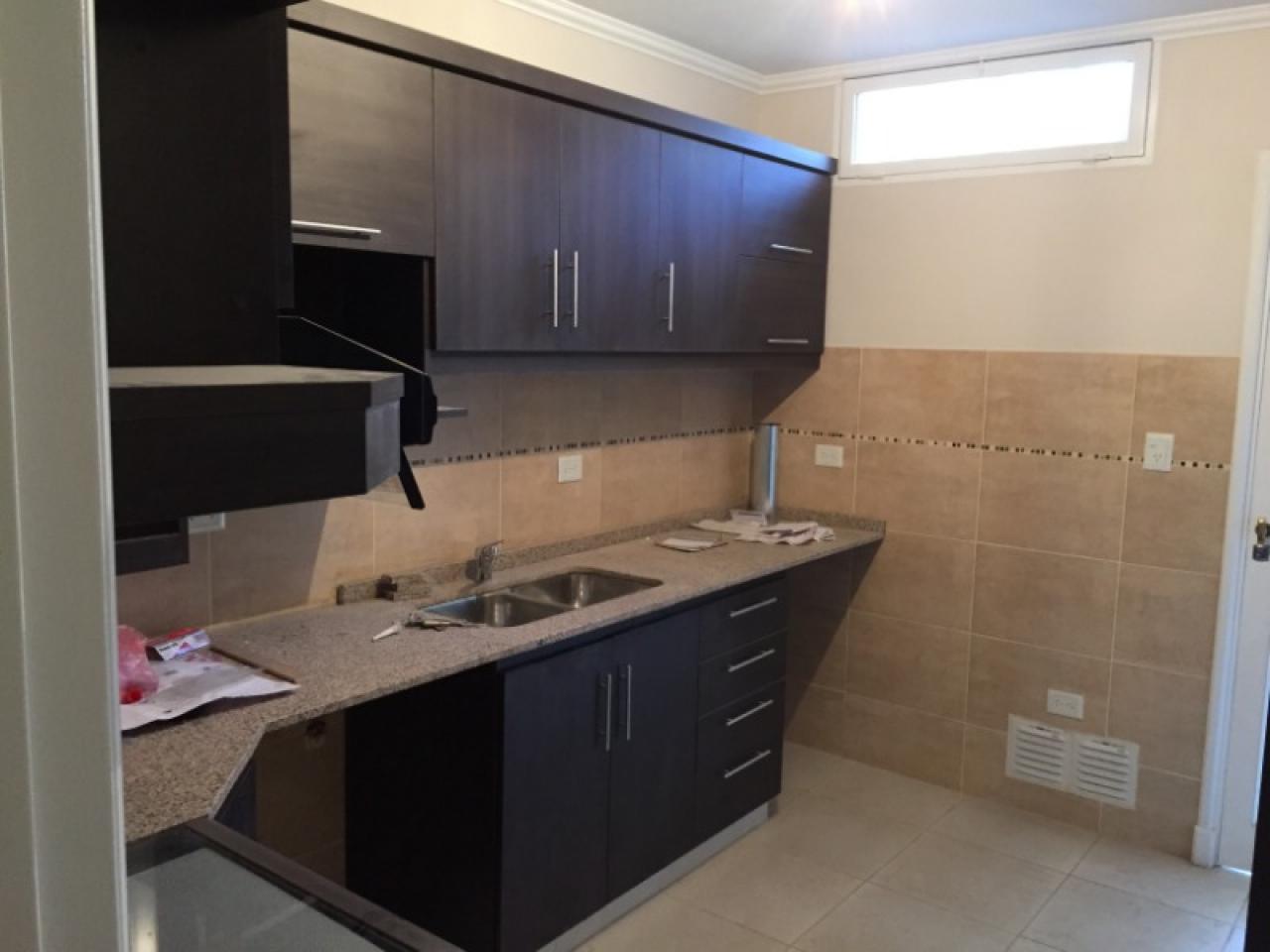 Departamento tipo casa, en planta baja, con cochera al frente y patio trasero con parrillero, verde con riego automático, excelentes muebles en cocina y artefactos en baño con antebaño, dormitorios con placares completos