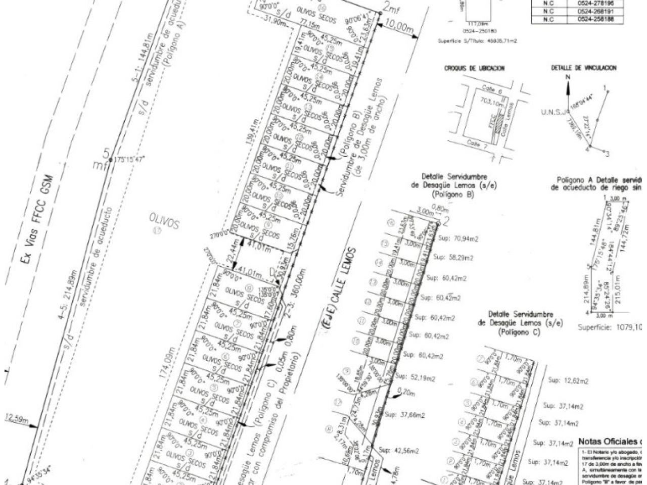 Lotes con frente a calle LEMOS disponibles precio pesos desde $ 20.651.029 ( Lote 15 de 878 m2 ) hasta $ 21.688.244.-