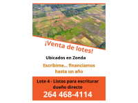 Lote En Promoción - Dueño Directo Vende Terrenos En Zonda - Agua . Cloaca Y Calle Con Ripio - Lote 4
