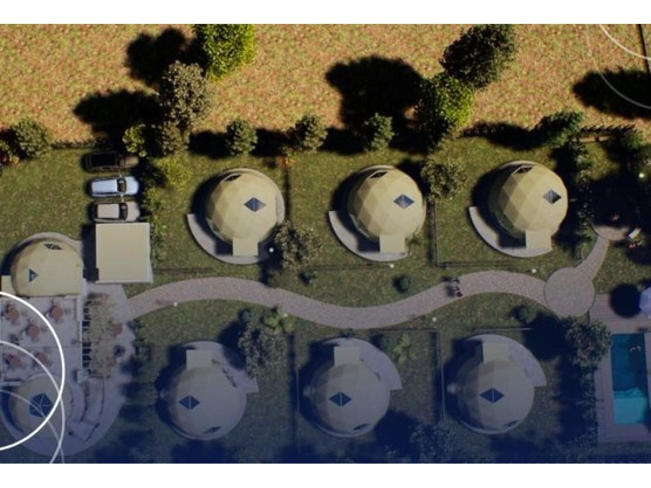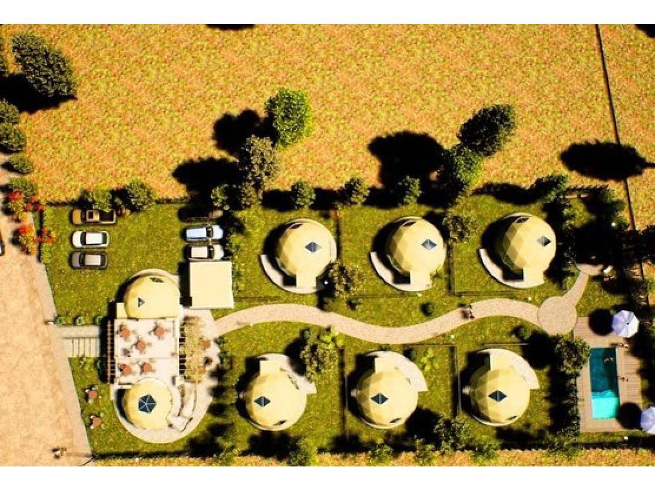 • 1 Domo central: destinado a fines gastronómicos y a la administración del complejo.