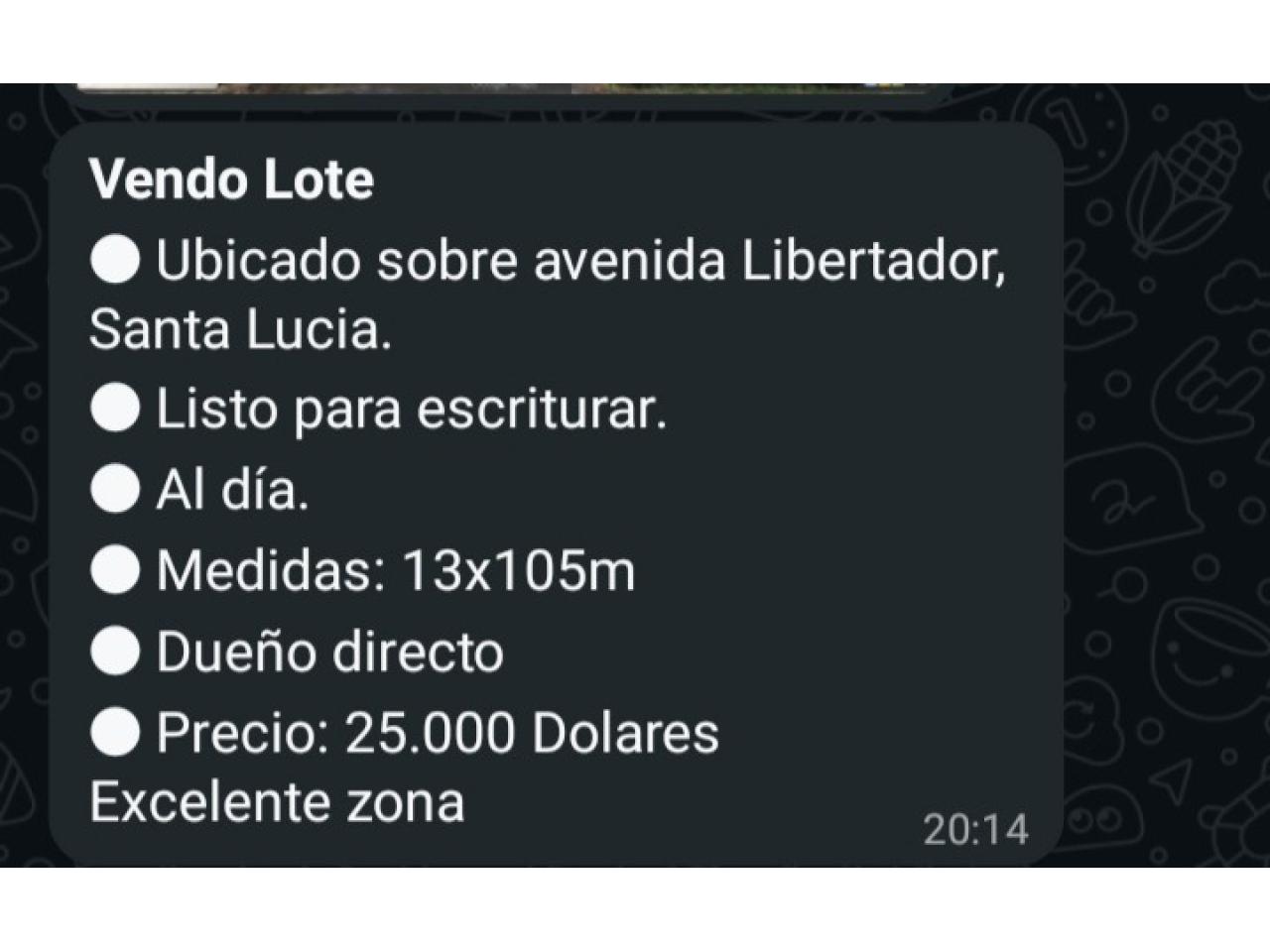 Lote 13 x 105 M listo para escriturar se reciben vehiculos precio 25.000 Dolares whatsapp 2645776167