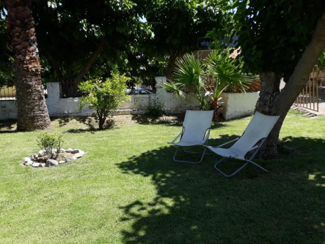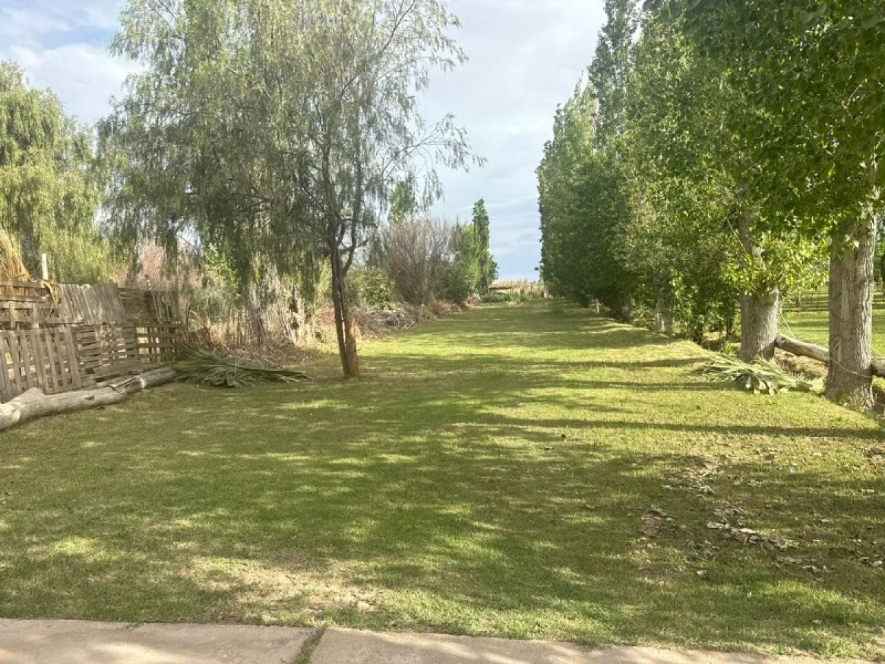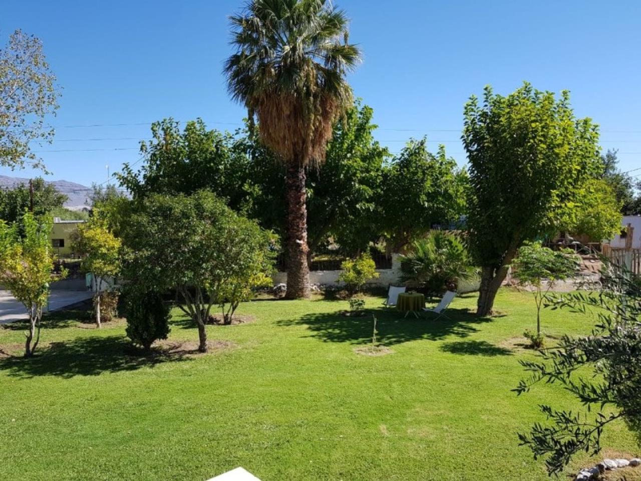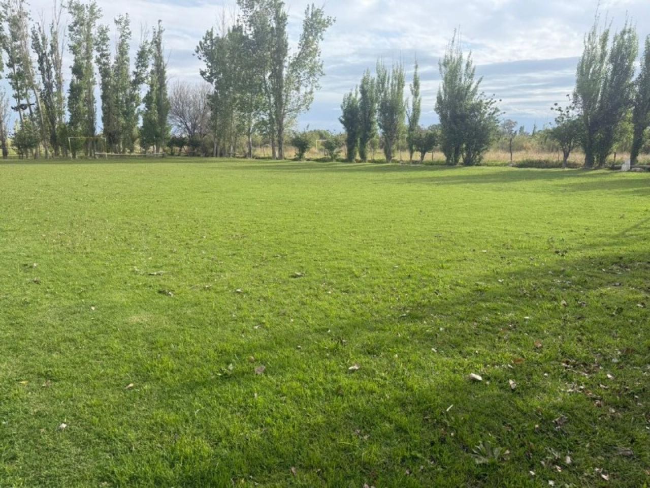 Amplio espacio verde con arboles frutales.