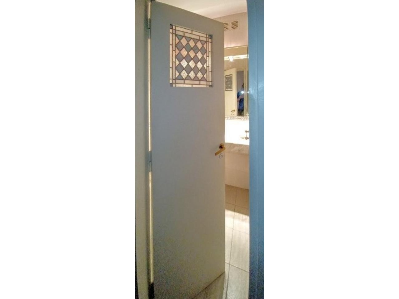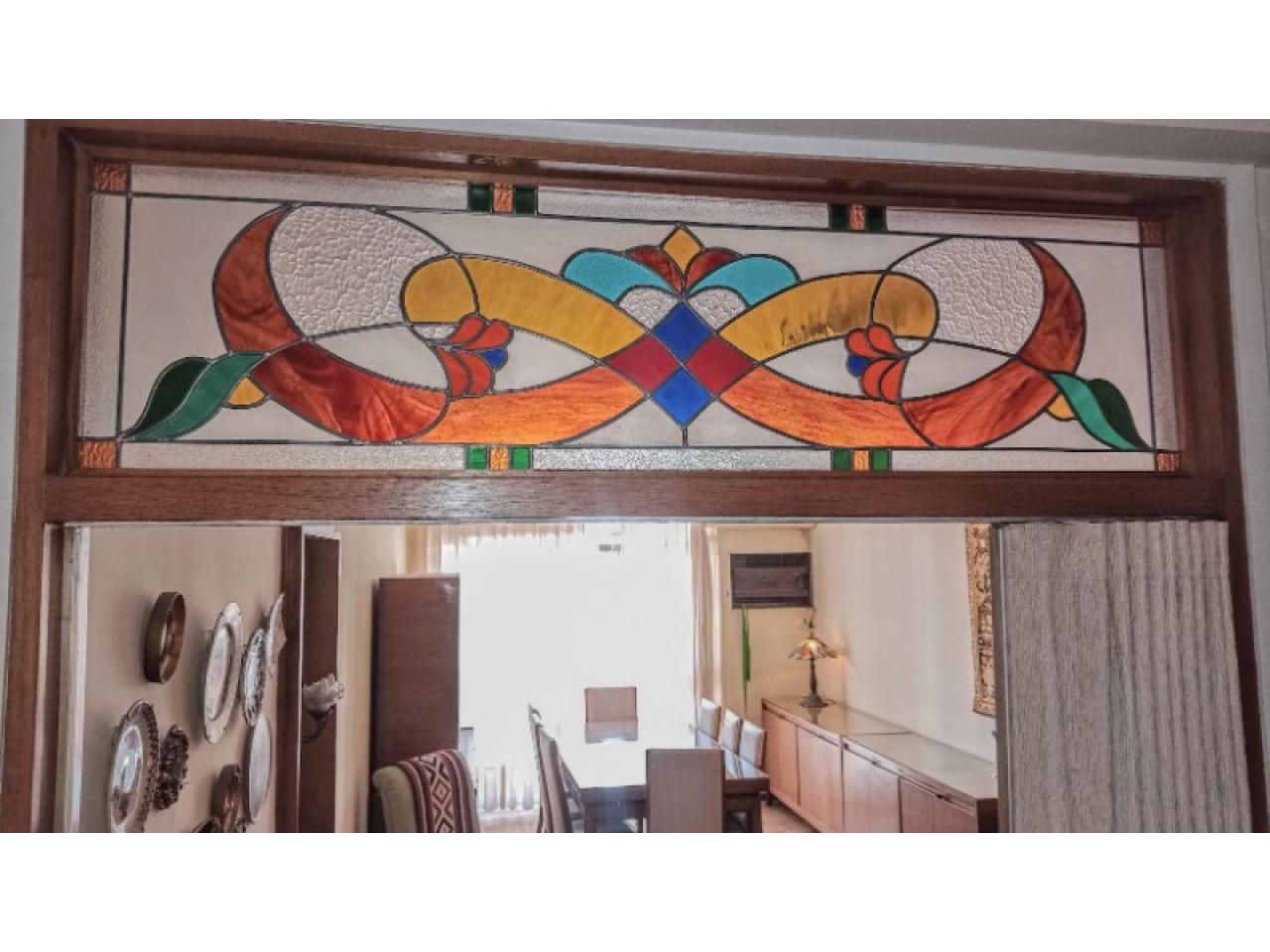 Vitrales Tiffany (vitraux) en puertas de baños y living.