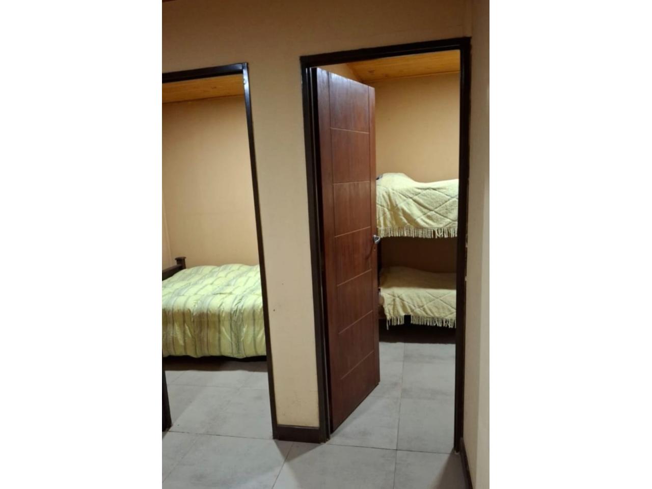Cada una cuenta con 2 dorm, 1 con cama matrimonial y otro con 1 cucheta, incluye ropa de cama.