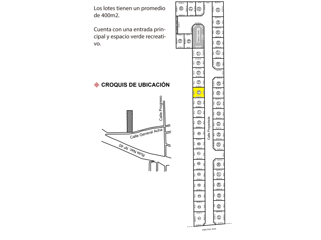 Lote de 378.98 m2 ubicado en reciente Loteo Altos de Trinidad (Gral Acha 3048 sur). 18m de frente por 21m de profundidad. Frente orientado al sur. Listo para escriturar.