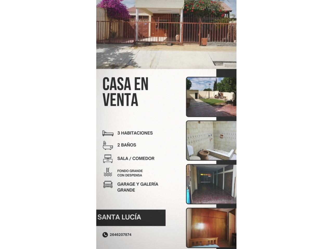 Venta. Casa De Categoria 3 Habitaciones 2 Baños. Santa Lucia