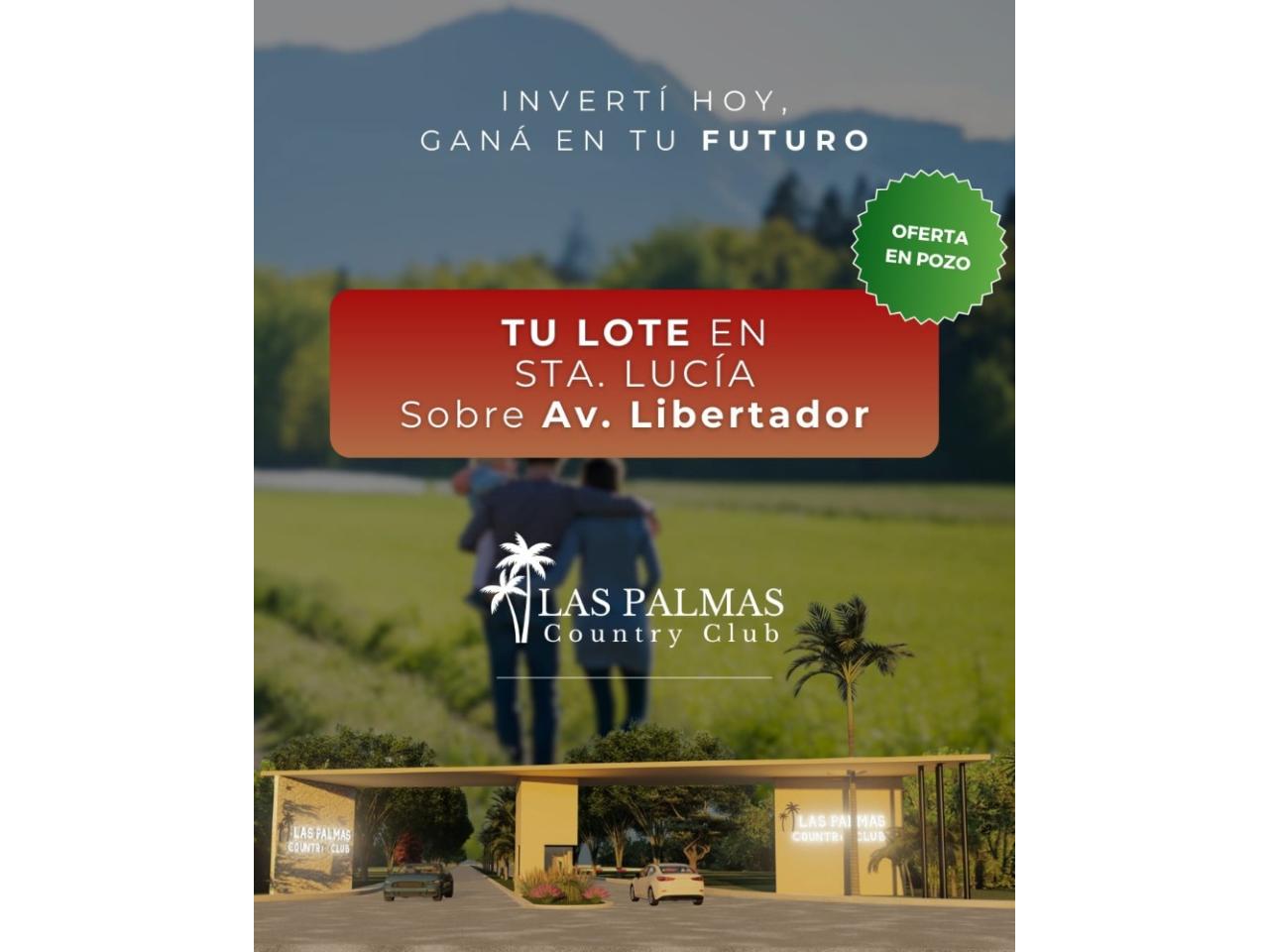 Lote de 400 m² en un barrio privado exclusivo en preventa, ubicado sobre Av. Libertador, en Santa Lucía, a solo 100 metros de la plaza de Alto de Sierra.