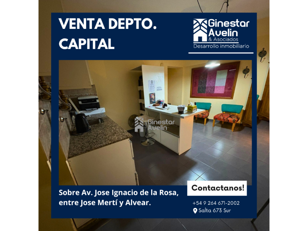 Venta de departamento en 1er piso sobre Av. José Ignacio de la Rosa, Capital.