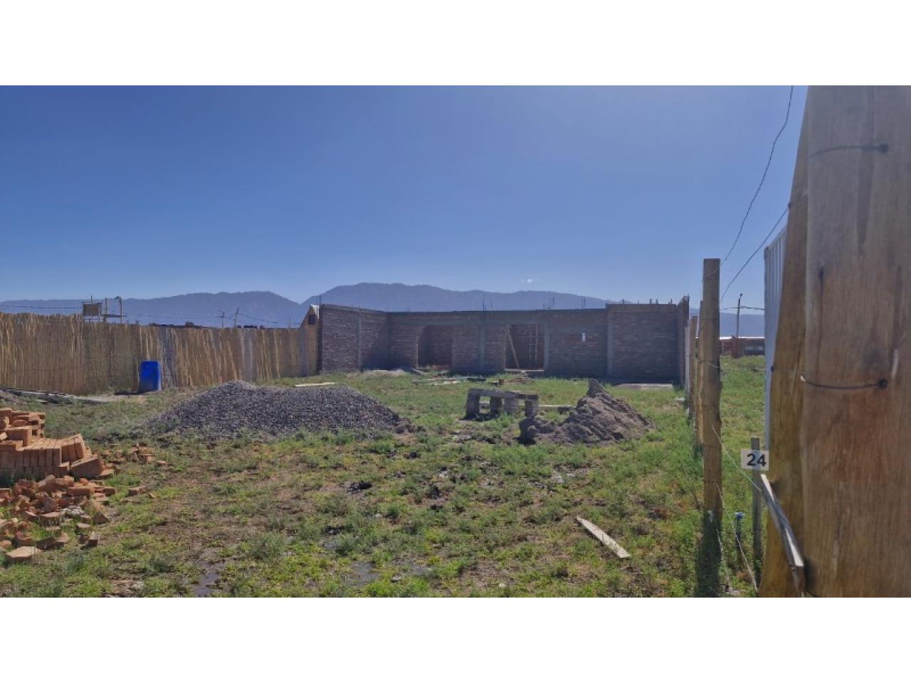 Baño interior de 5X3, cocina comedor de 6x5 y habitación de 5x5. Baño exterior de 3x2 y estructura para quincho de 14x6.