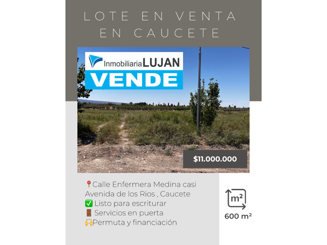 Venta. Lote 1000m2 Sobre Av De Los Ríos. Caucete