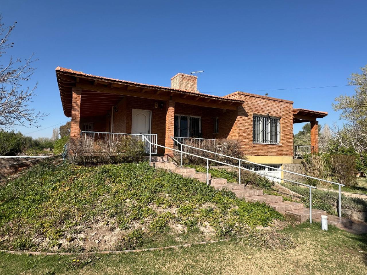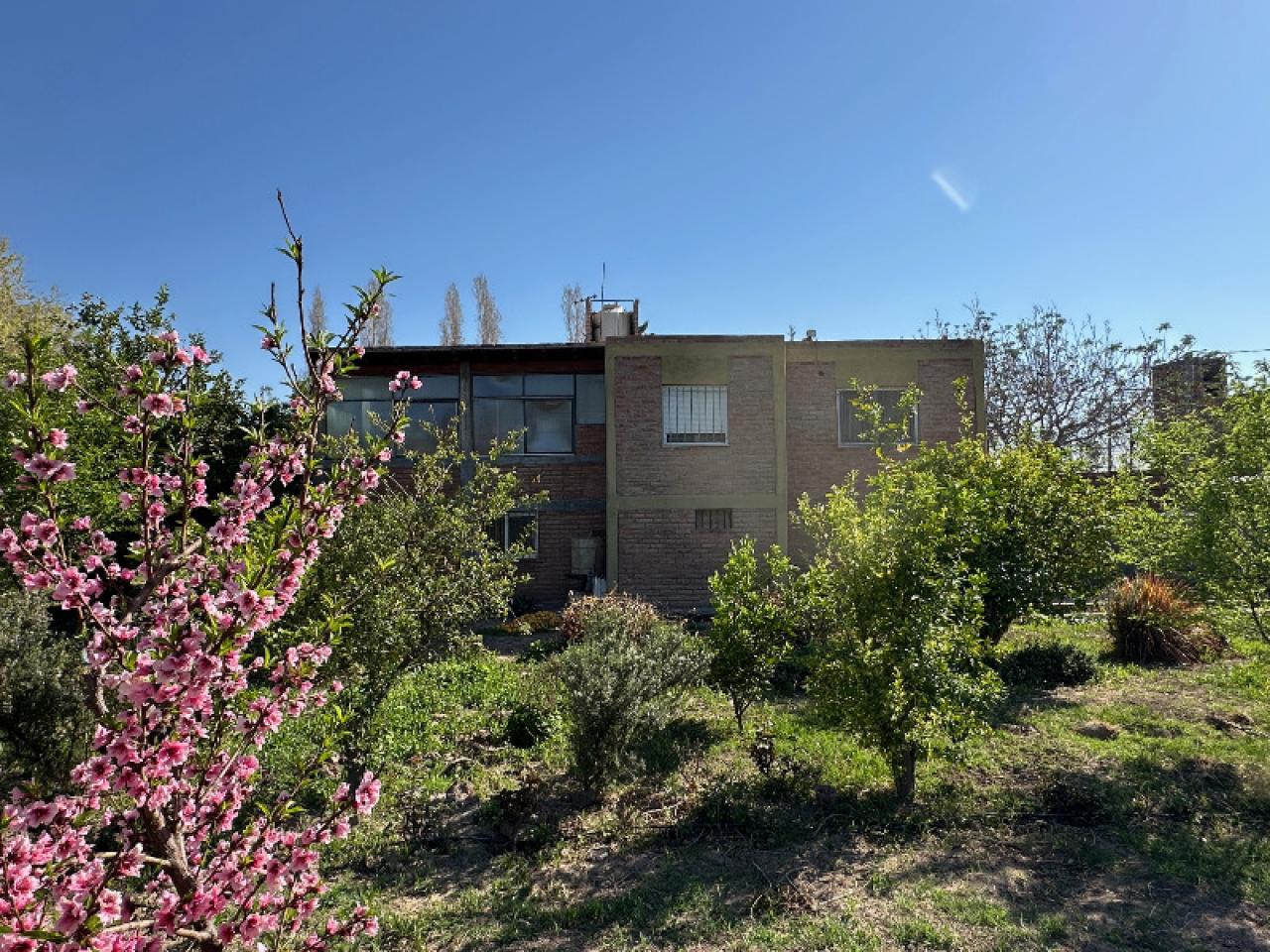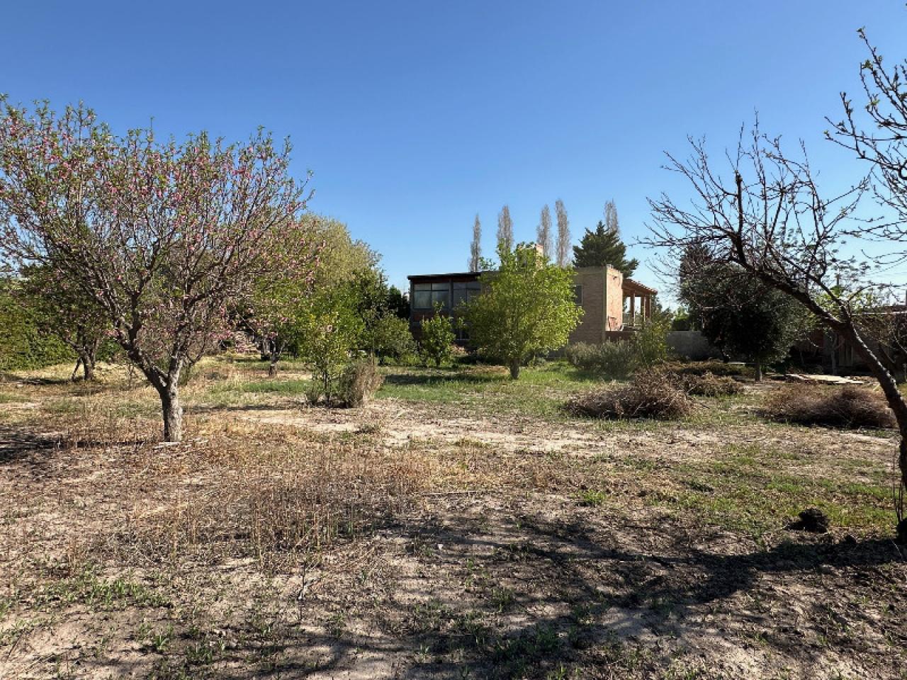 Al frente hay un espacio de jardín y al fondo unos 4.000 m2 de terreno parte limpio y parte con frutales.