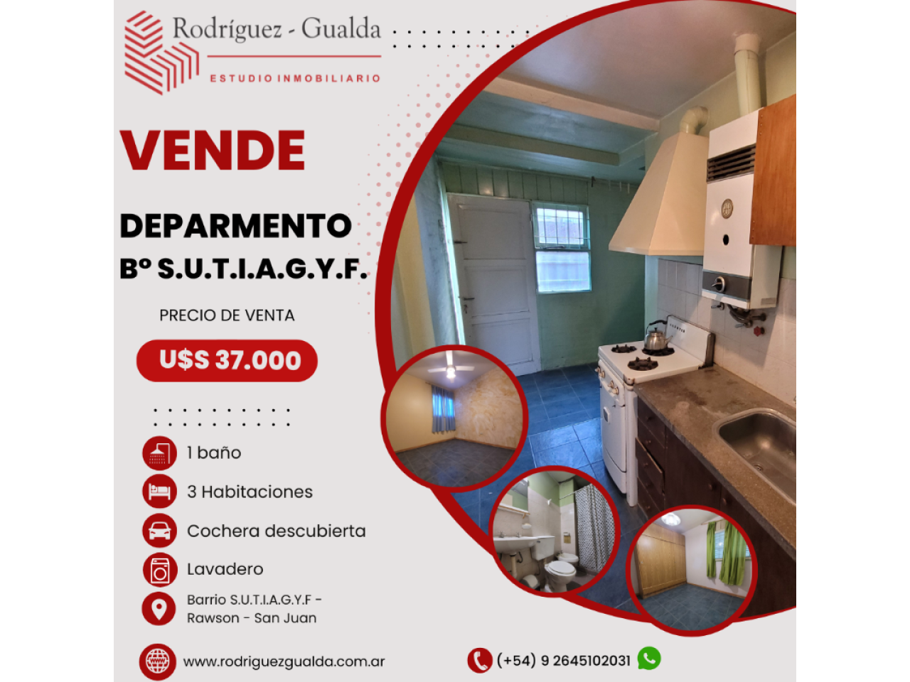 RODRIGUEZ-GUALDA Inmobiliaria: VENDE!!!! depto ¨PLANTA BAJA" de 3 DORMITORIOS con cochera descubierta.