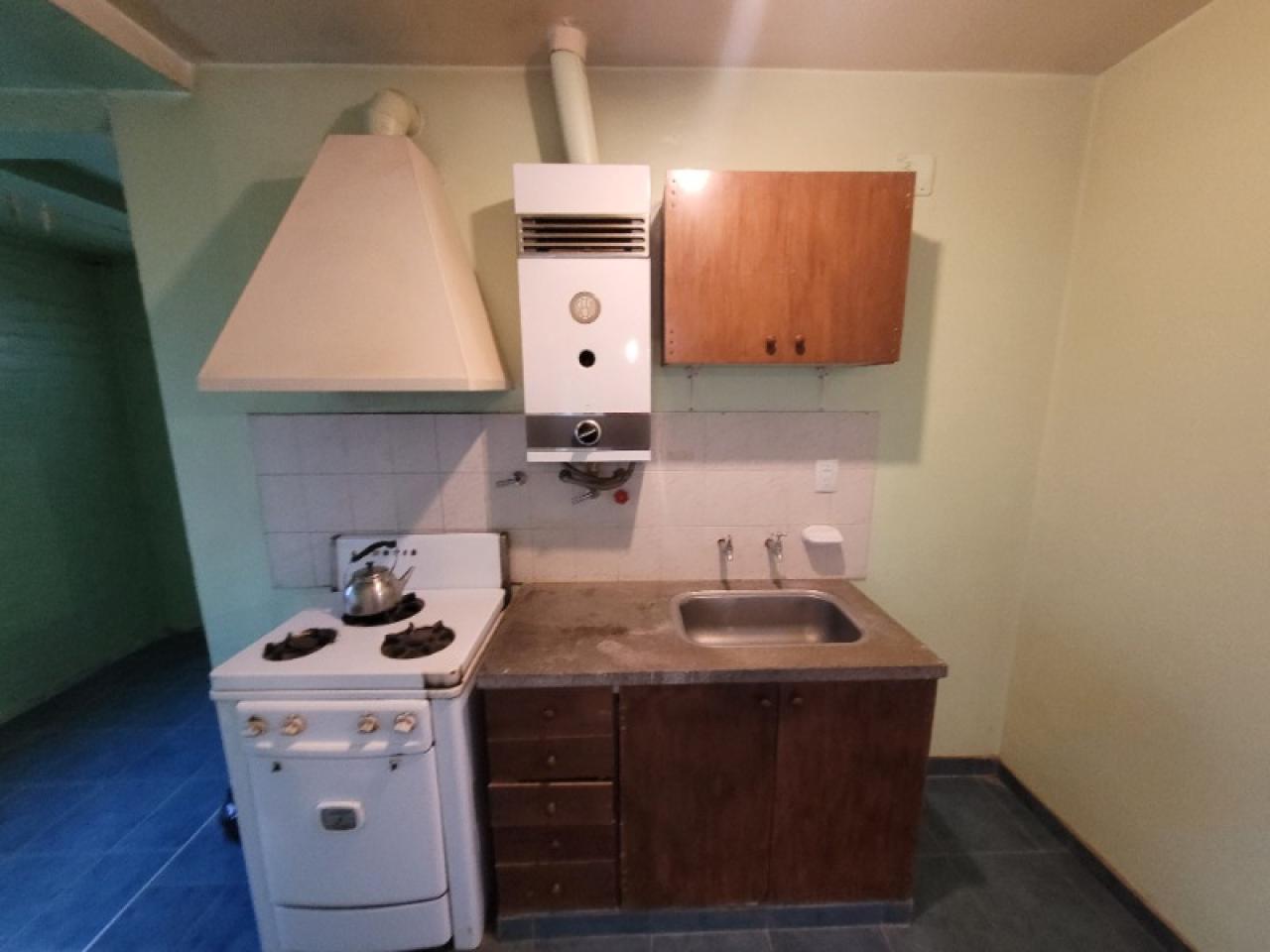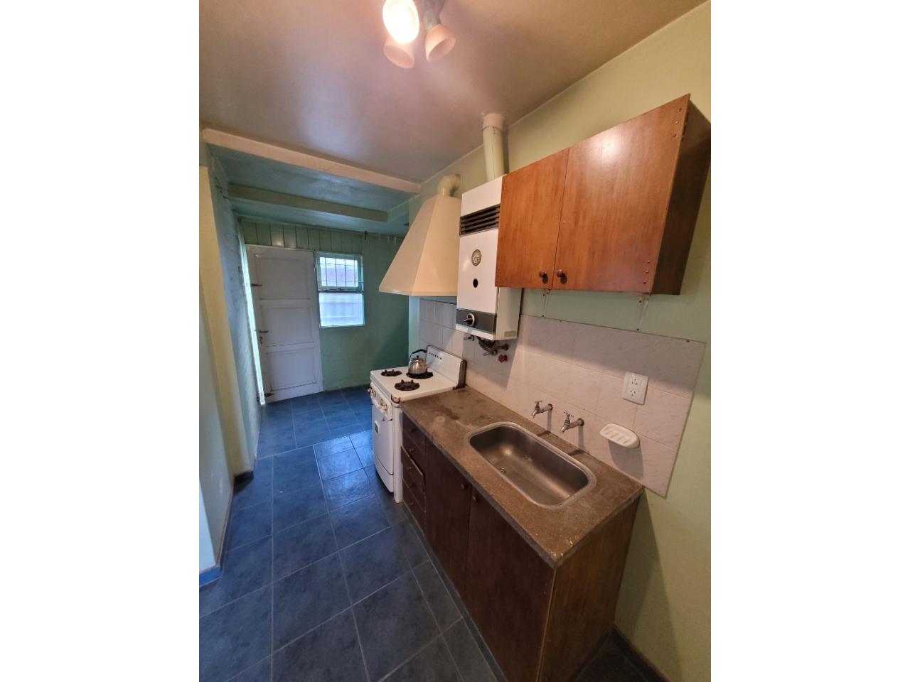 -Cocina separada del Comedor con artefacto de cocina, campana, calefón, mueble bajo mesada y alacena.